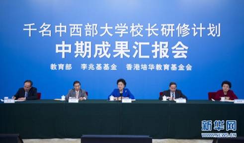 9月23日上午,“千名中西部大学校长研修计划”中期成果汇报会在北京人民大会堂香港厅召开。
