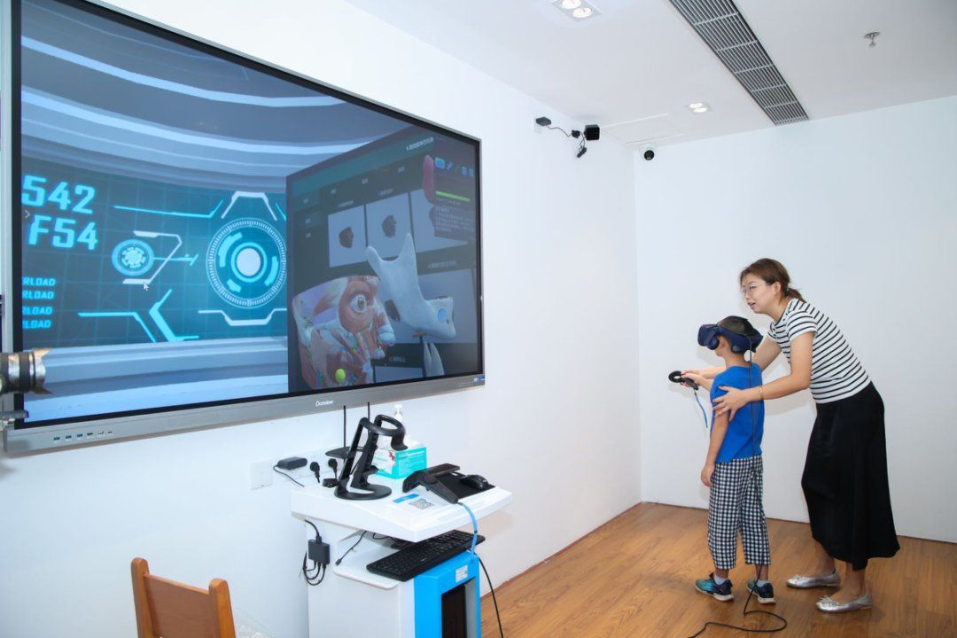 文化拓展空间的科技体验深受欢迎。他们在技术人员指导下,通过3D虚拟平台操作观察人体器官结构;乘坐VR科普蛋椅,在“环球地理”“自然生物”等八大主题中沉浸式阅读;通过触屏操作,在“垃圾分类”“中国高铁”等场景中完成知识问答。新奇有趣的科技体点燃了孩子们的好奇心和探索欲。