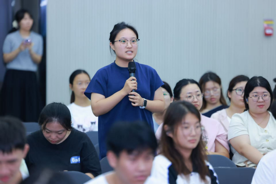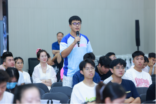 在互动交流环节,参与讲座的老师、同学们热情高涨,纷纷举手提问,就自己关心的学业、职业规划、人生选择、行业趋势等问题与四位校友嘉宾进行了深入交流。校友嘉宾们耐心细致地解答了师生的疑问,并结合自己的经验给出了宝贵的建议和意见,现场气氛热烈,思想的火花不断碰撞。