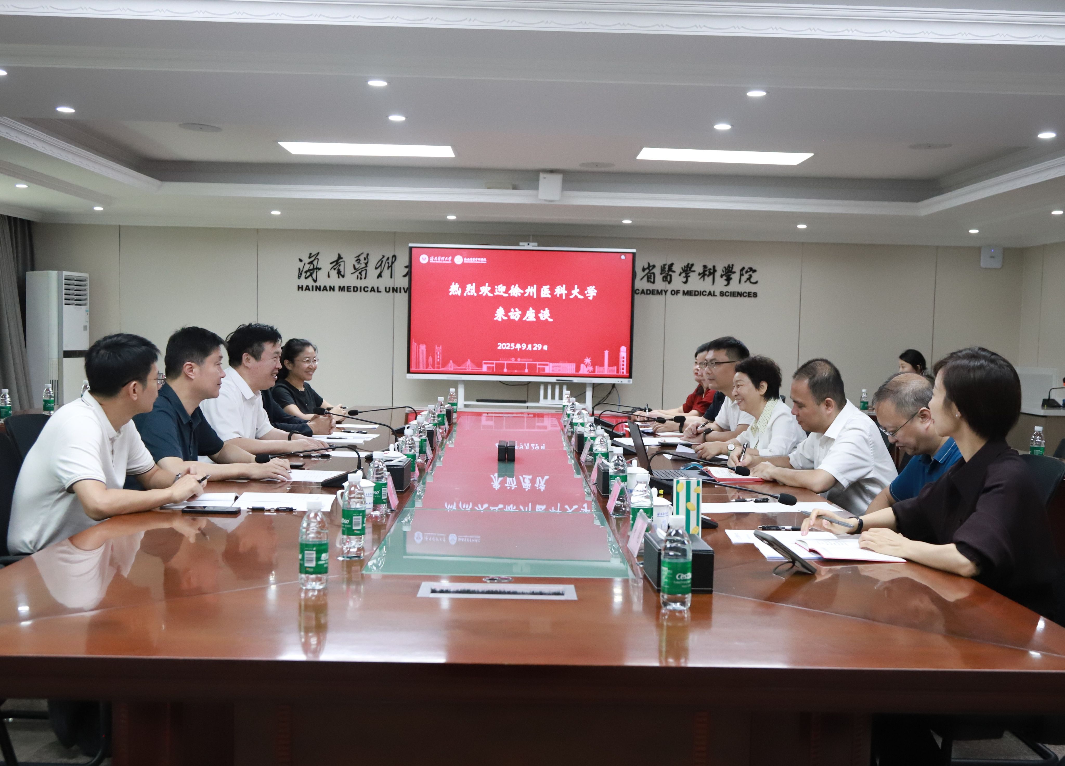 9月29日,徐州医科大学党委副书记、副校长徐海波率队到访我校,并围绕高校治理改革进行座谈交流。我校党委书记张彩虹、副校长黄斌文出席座谈会。