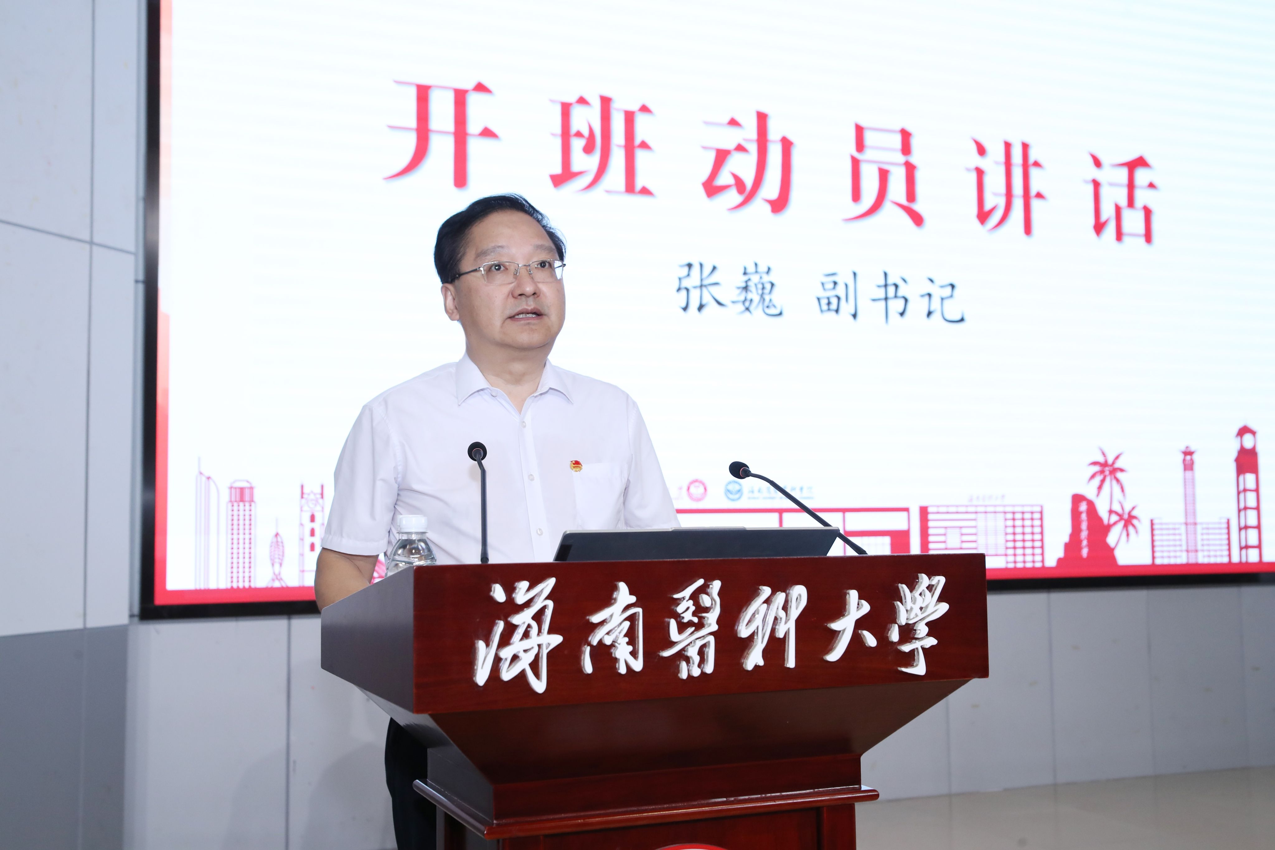 张彩虹以《从马克思主义那里寻求“真经”——做又红又专的新时代接班人》为题,围绕什么是青马工程、为什么要实施青马工程、什么是马克思主义、怎样对待和运用马克思主义四大核心问题展开系统讲授。她指出,青马工程是培养青年马克思主义者的“政治熔炉”,是学校落实立德树人根本任务的关键抓手,更是培养堪当自贸港建设重任和民族复兴大任的青年政治骨干的“铸魂工程”,必须以理论武装筑牢信仰之基,以实践锤炼锻造过硬本领。当前海南自贸港建设进入封关运作倒计时阶段,迫切需要一批既懂马克思主义真理力量、又掌握扎实医学专业本领的青年先锋。在阐释“什么是马克思主义”时,张彩虹结合医学学科特点比喻:“马克思主义如同医学的‘基础理论’,既能够揭示社会发展的‘病理机制’,也能够提供解决问题的‘诊疗方案’,以其鲜明的科学性、人民性、实践性、发展开放性而成为我们认识世界、改造世界的‘金钥匙’。”对于“怎样对待和运用马克思主义”,张彩虹强调,要坚决反对把马克思主义教条化的错误倾向,将其作为科学的世界观和方法论来指导实践,要践行矛盾分析法,提升辩证思维能力;要践行现象本质论,透过现象看本质;要践行实践认识论,推动实践与理论创新良性互动;要践行实事求是,以科学精神推动学术创新;要践行人民至上,涵养人文情怀,青年要以正确的“三观”指导自身选择,在考验中实现人生升华与超越,让理论之光照亮实践之路。