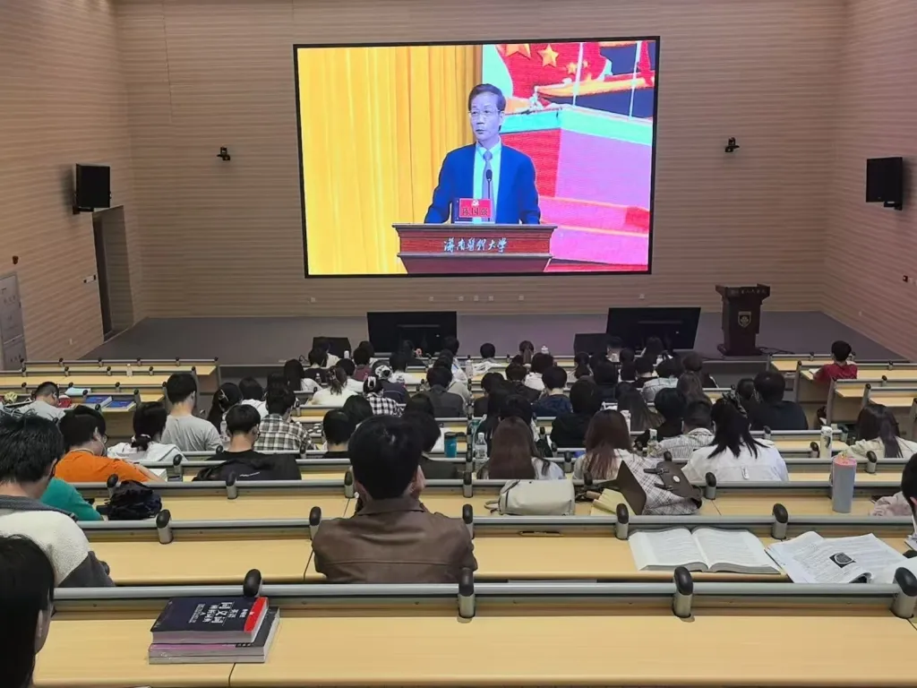 副省长谢京、省政府副秘书长王鹏、省教育厅厅长丁晖、省政府研究室主任霍沛军参加授课,中国科学院院士、校长陈国强主持授课。全体校领导班子成员、中层干部、思政课教师和学生代表近2000人通过主会场和四个分会场共同聆听了授课。