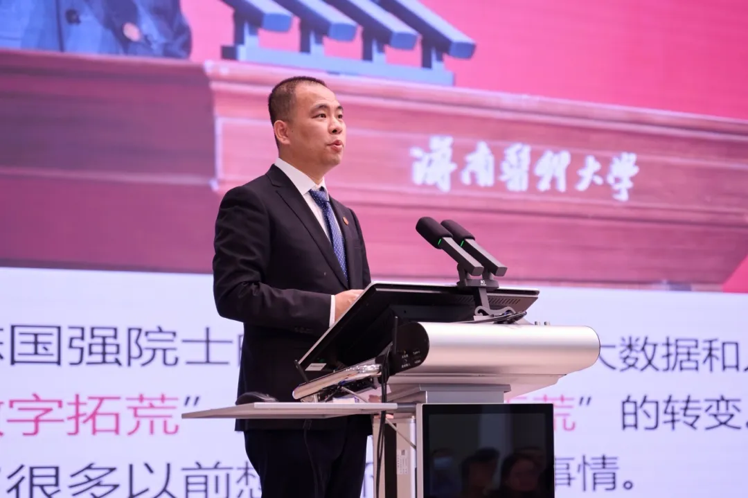 12月5日下午,国家智慧教育平台全面深化应用试点工作部署动员会在我校举行。教育部教育技术与资源发展中心(中央电化教育馆)党委书记、主任李萍,省委教育工委副书记、省教育厅党组书记、厅长丁晖出席会议并讲话。我校党委常委、副校长黄斌文受邀作《人工智能赋能海医高质量发展实践》的专题汇报,系统介绍了学校近年来以数字化推动教育教学改革的探索与成效。