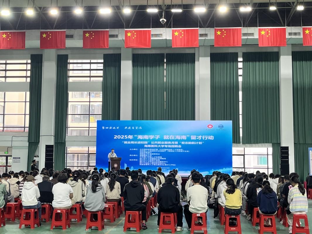 12月14日上午,2025年“海南学子 就在海南”留才行动——“就业局长进校园”公共就业服务月暨“宏志助航计划”海南医科大学专场招聘会在我校子文体育馆成功举办。本次活动旨在积极响应自贸港“留才用才”政策、为我校学子提供更精准、更高效的就业供需对接平台。