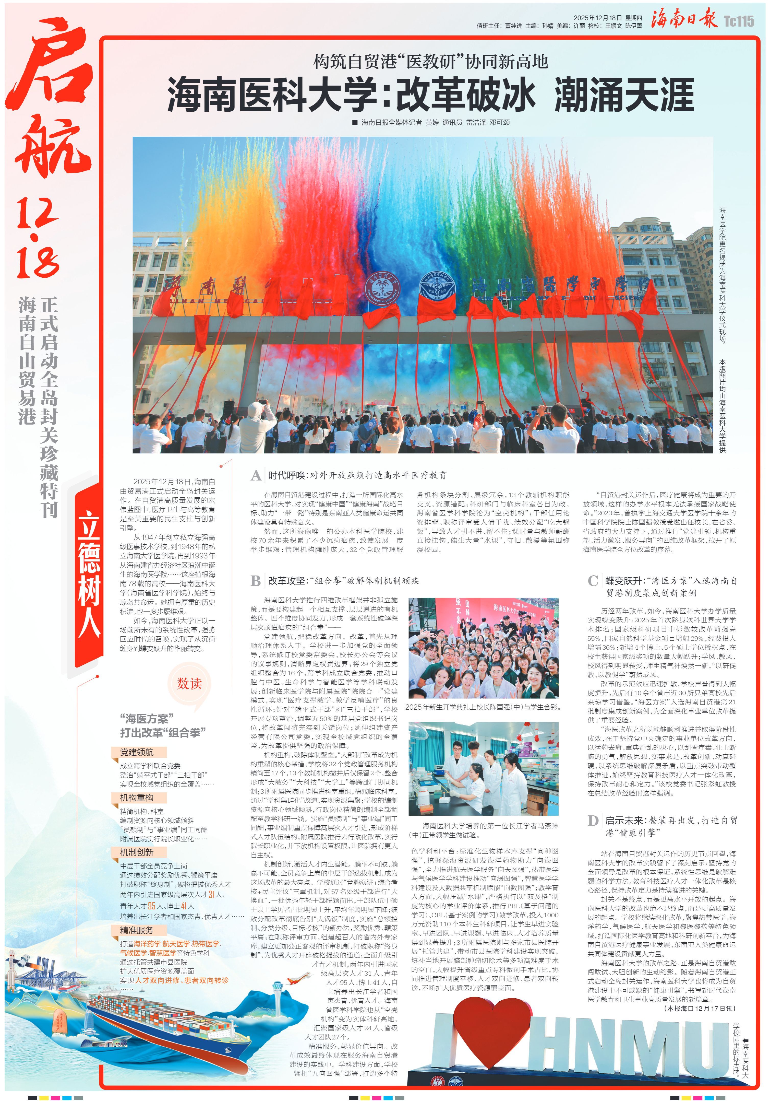 海南医科大学的改革之路,正是海南自贸港敢闯敢试、大胆创新的生动缩影。随着海南自贸港正式启动全岛封关运作,海南医科大学也将成为自贸港建设中不可或缺的“健康引擎”,书写新时代海南医学教育和卫生事业高质量发展的新篇章。