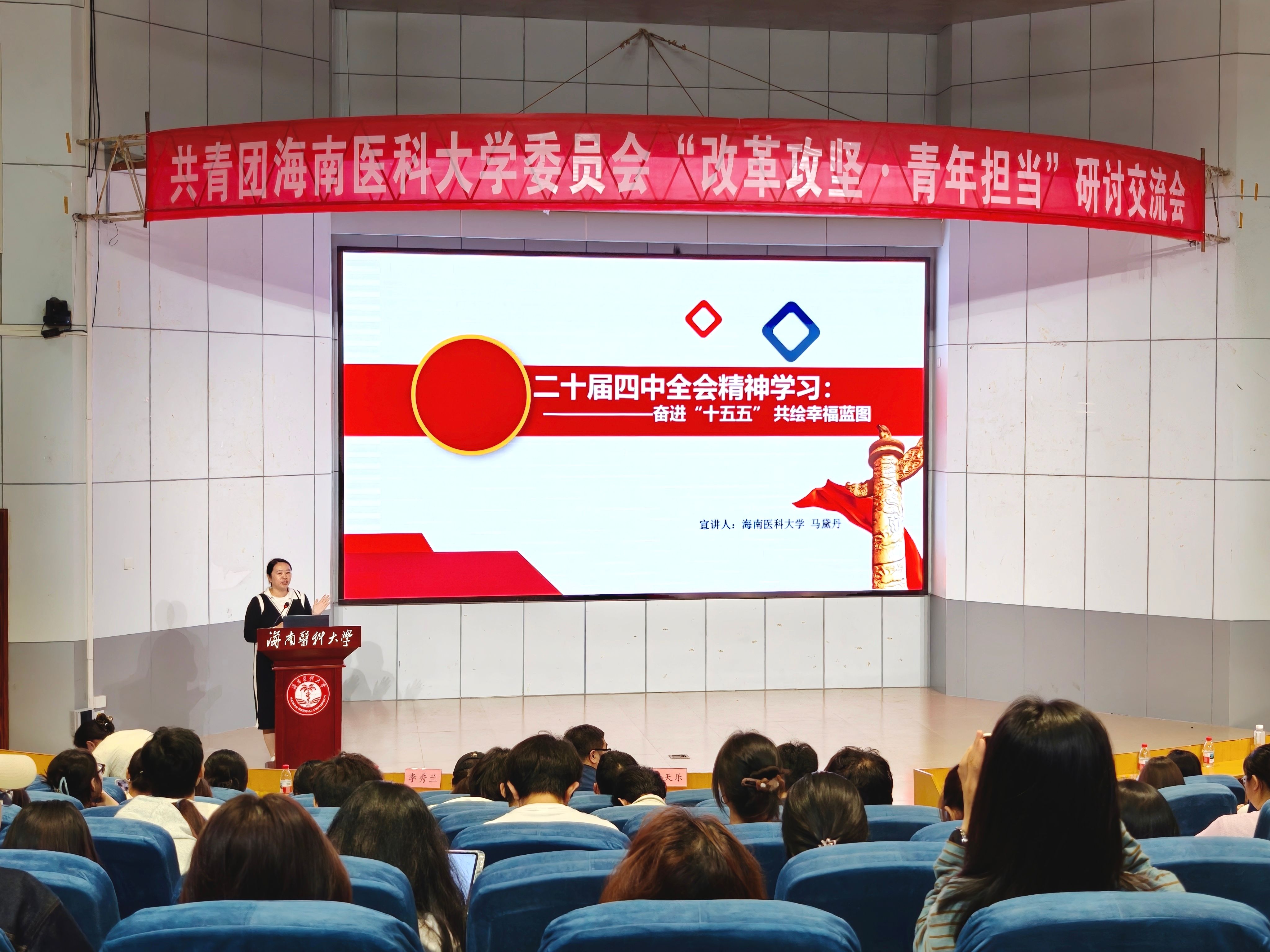 马克思主义学院马黛丹老师从党的二十届四中全会召开的重大意义、“十五五”规划蓝图、青年行动清单、个人梦想与时代浪潮交汇等四个方面,系统解读了全会精神。她指出全会为国家发展指明了方向,为海南自贸港提供了广阔舞台,并呼吁大家携手前行,做好自贸港合伙人,共同建设更强更温暖的海南。