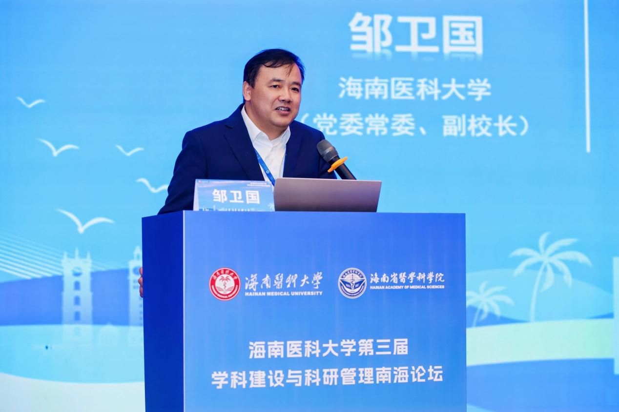 我校副校长邹卫国在致辞中指出,立足海南自贸港建设战略机遇,高校需强化“学科-科技-医疗”协同发展体系,以学科建设引领区域医疗卫生服务能级提升。