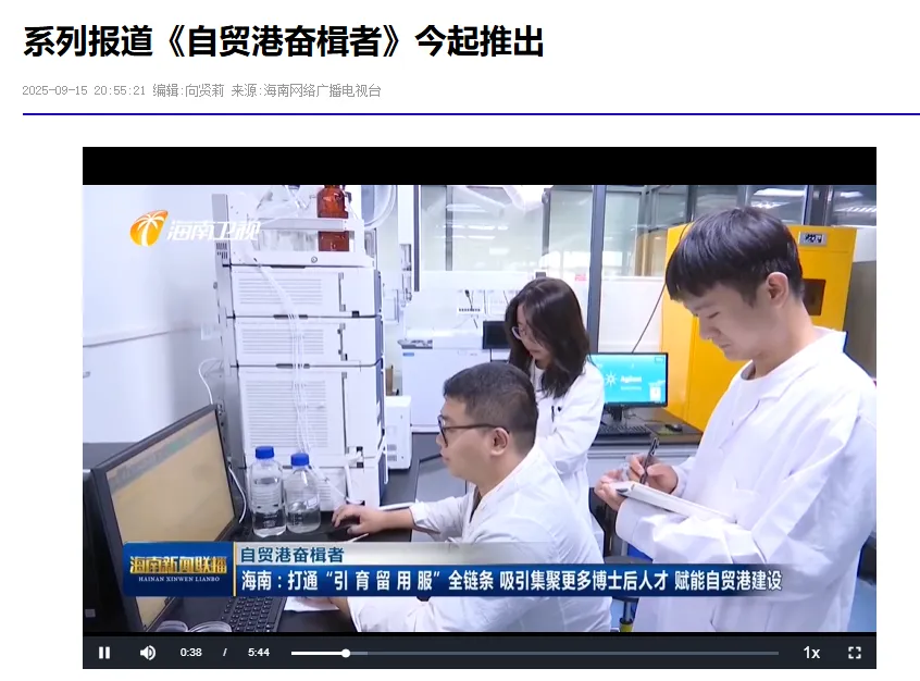 2025年9月,海南网络广播电视台报道《自贸港奋楫者》,宣传我校博士后建设成效。