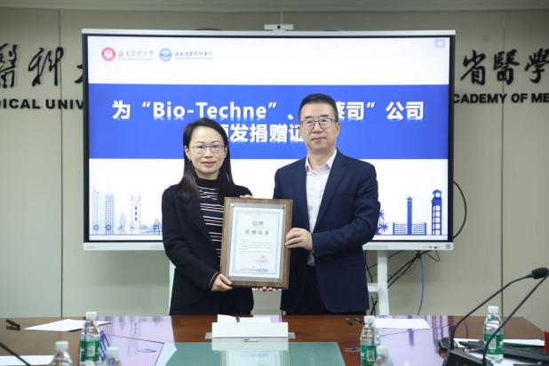 1月11日上午,Bio-Techne”“蔡司”公司捐赠仪式在学校文墀楼第一会议室举行。Bio-Techne公司大中华区负责人韩爱明、销售工程师熊鹰,卡尔蔡司(上海)管理有限公司华南区经理赖若昧、销售工程师陈公云,海南绿安科技有限公司总经理姚帅,以及海南医科大学教育发展基金会理事长郭宇、海南医科大学基础医学院院长李东伟等出席捐赠仪式。仪式由教育发展基金会副秘书长林仕芬主持。