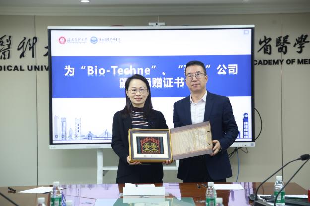 韩爱明首先致辞。他指出,Bio-Techne始终聚焦生命科技领域,核心深耕蛋白质研究,业务覆盖从基因、蛋白到制药、健康、医疗的全产业链。公司拥有多项自主研发的前沿技术平台,包括数字化定量WB技术、微流控多靶标ELISA检测技术以及已纳入中国药典的器官定义全流程质控技术。韩爱明先生表示,非常看好海南自贸港的政策优势与海南医科大学的发展潜力,期待海医师生能充分运用这些先进技术开展高水平科研,加速科技成果转化,并希望以此为契机,与学校深化合作,实现共赢。