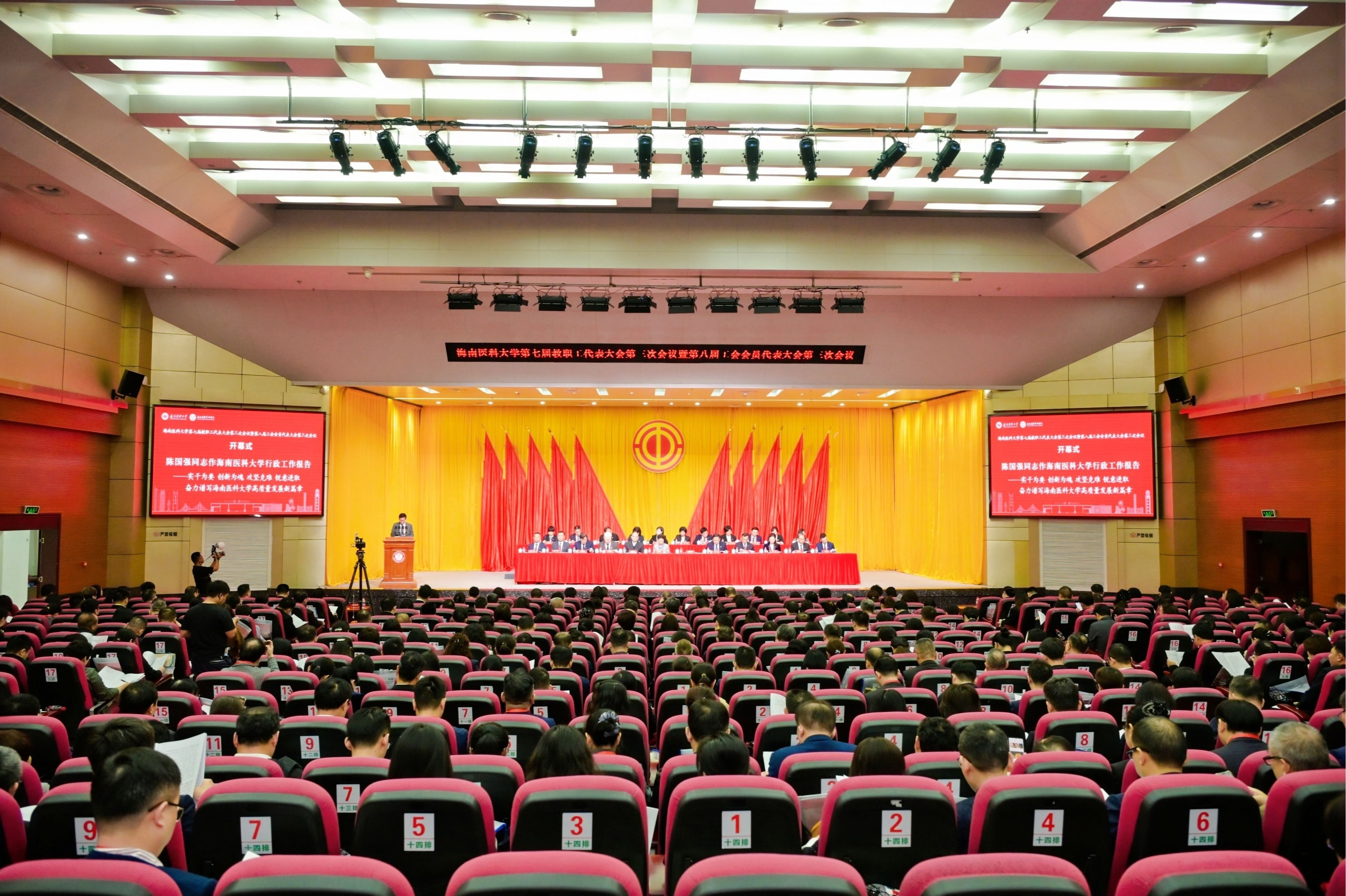 1月25日,海南医科大学第七届教职工代表大会第三次会议暨第八届工会会员代表大会第三次会议顺利召开。来自全校各部门、各单位的412名正式代表、30名列席代表与学校原党委书记廖小平,原副校长孙晓宁、陈玉民等6名特邀代表齐聚一堂,共商学校改革发展大计。学校党委副书记张巍主持会议。