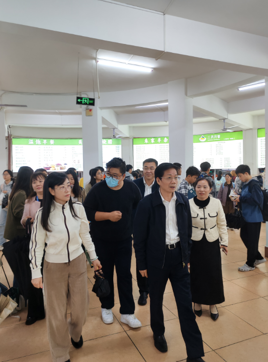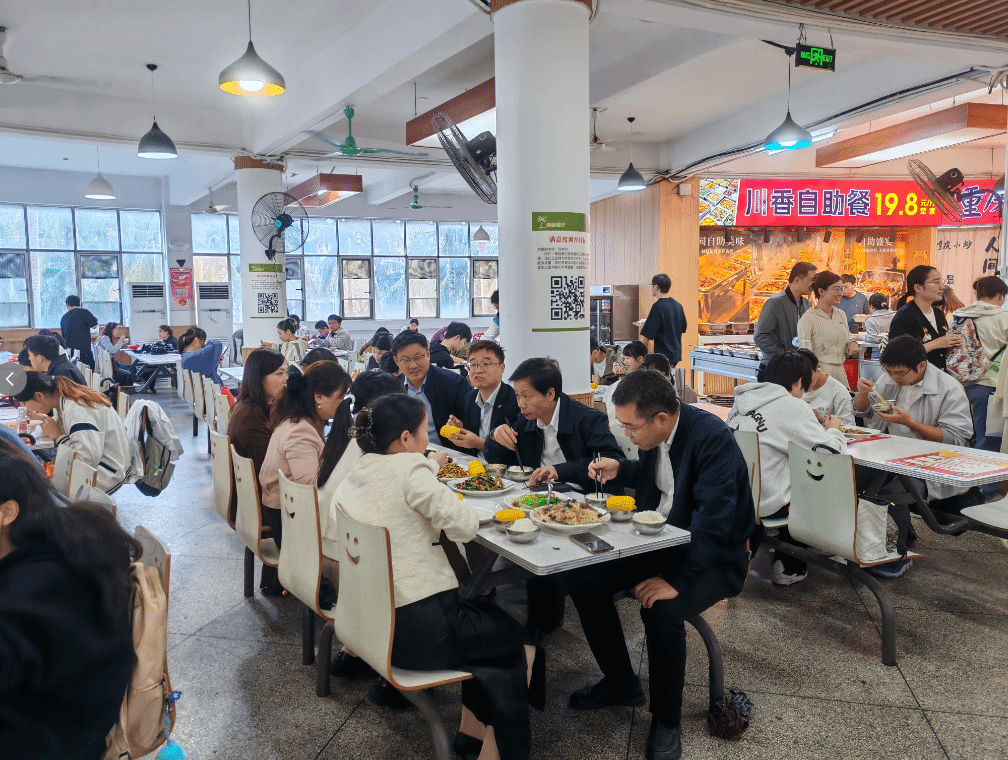 3月10日中午,校长陈国强、副校长贾彬及相关职能部门领导深入椰园餐厅(第一食堂)开展实地调研,现场察看学生就餐环境、询问菜品质量、检查食品安全管理情况,并与就餐学生亲切交流,倾听同学们的意见建议。