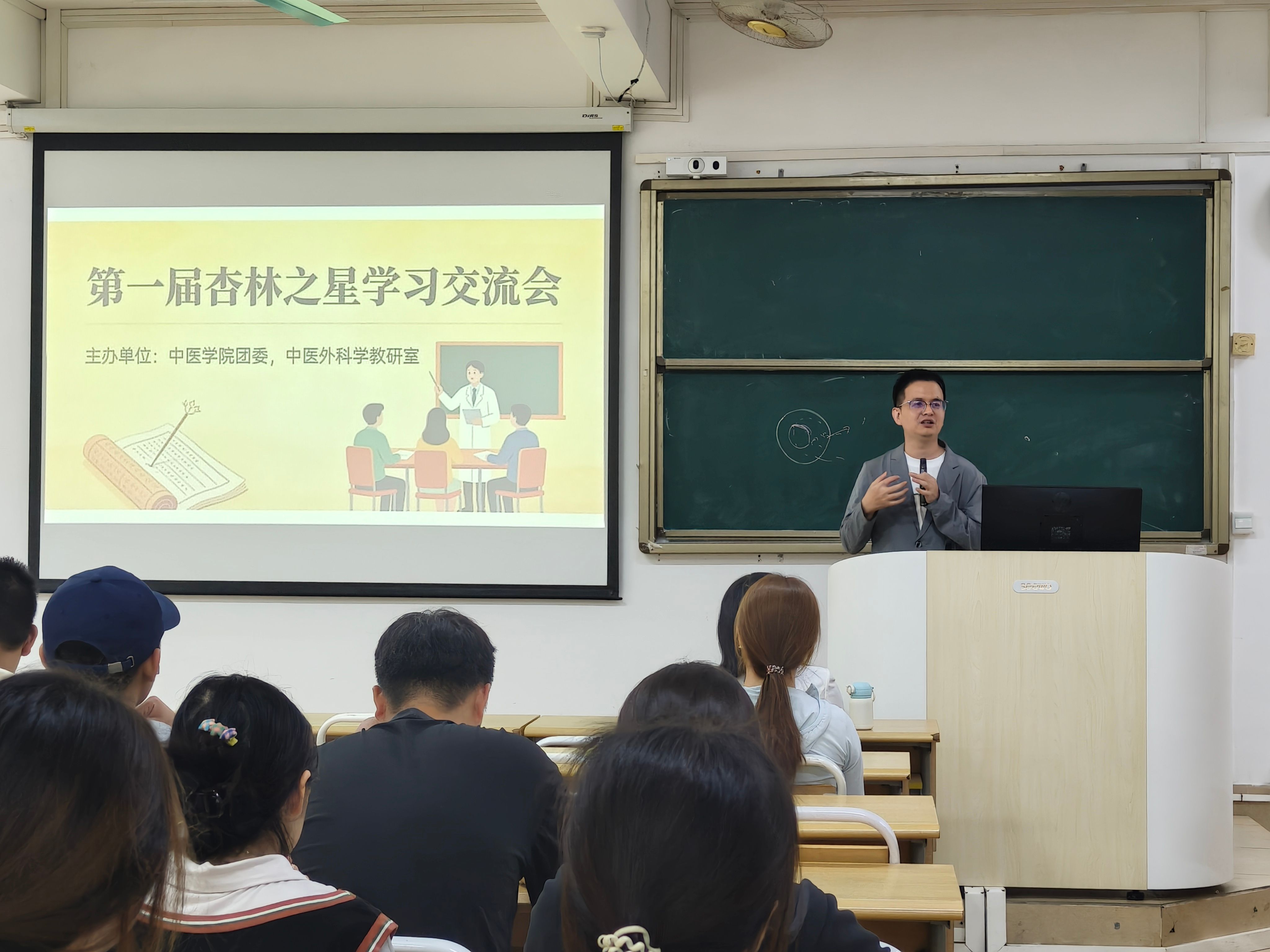3月20日,我校中医学院团委联合中医外科学教研室共同主办第一届“杏林之星”学习交流会。活动旨在进一步营造浓厚的学术氛围,充分发挥优秀学子的榜样引领作用,帮助同学们明确学习目标、掌握科学的学习方法。