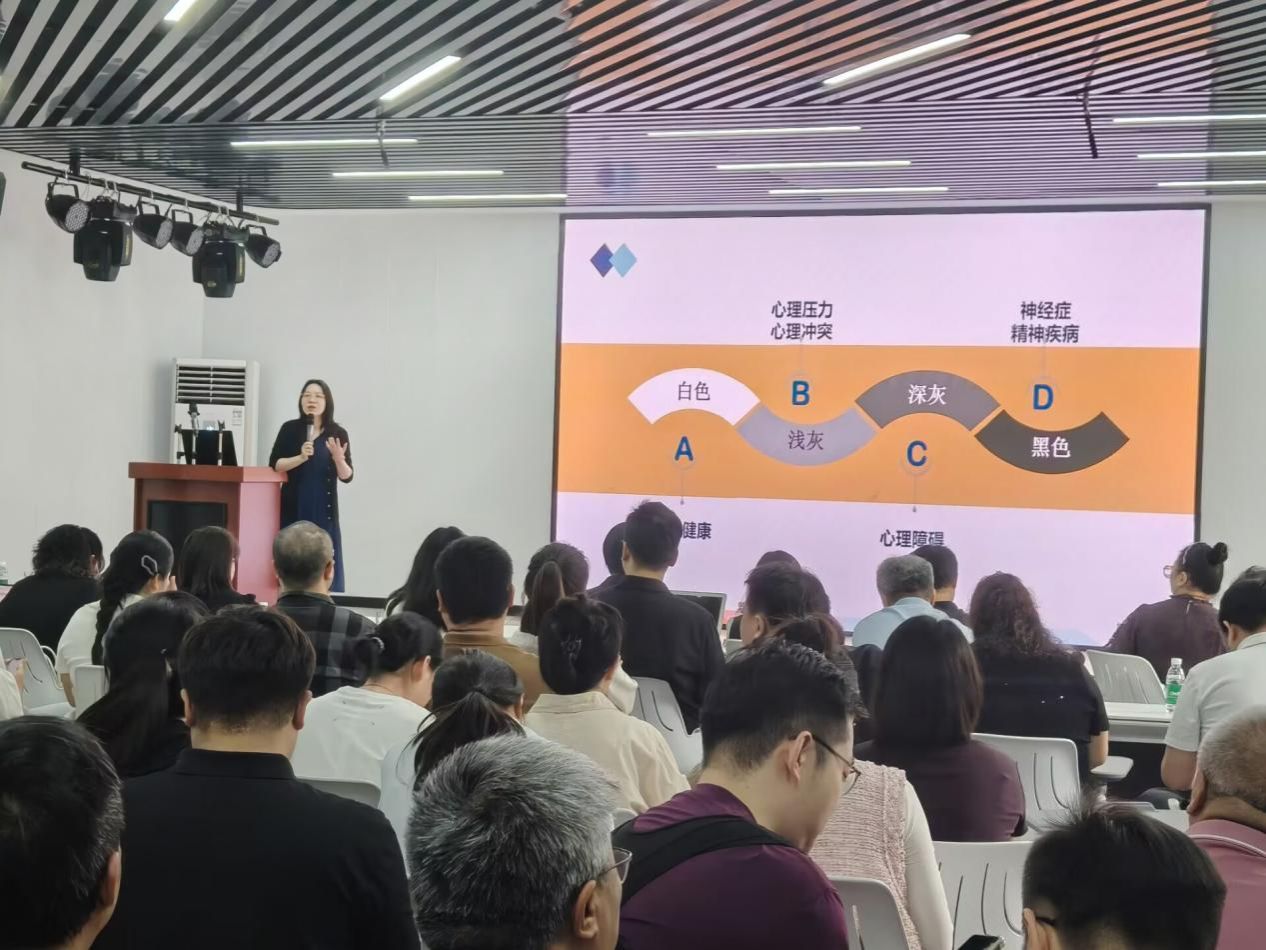 在上午场的培训中,戴吉教授紧扣学工干部心理调适与压力管理这一主线,从自我觉察、情绪疏导与认知调整三个层面展开系统讲解。她结合抑郁、双相情感障碍等常见心理问题,帮助辅导员精准识别自身及学生的心理状态。她还从外部资源与内部资源两个维度,梳理了谈心谈话的思维取向,并结合真实案例,阐释了情绪觉察在沟通中的关键作用。她指出“情绪占主要的时候,认知是被消除的”,现场示范了着陆技术等极端情绪干预方法,引导老师们在压力情境下有效稳定自身状态。整场培训注重实操体验,切实提升了辅导员的心理调适能力与自我赋能意识。