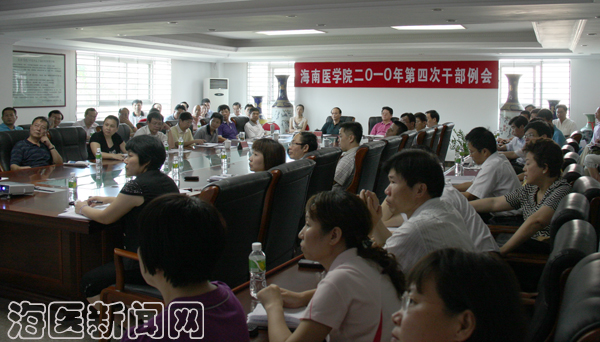 2010年5月5日下午,我校在第一会议室召开了2010年第四次干部例会,会议通报了学校近期情况,传达了省纠风办2010年纠风工作实施意见。李永春书记、廖小平校长分别作了重要讲话。党委委员、教职工监督委员会委员、院务委员、例会成员,民主党派及无党派人士代表等60余人参加了会议。