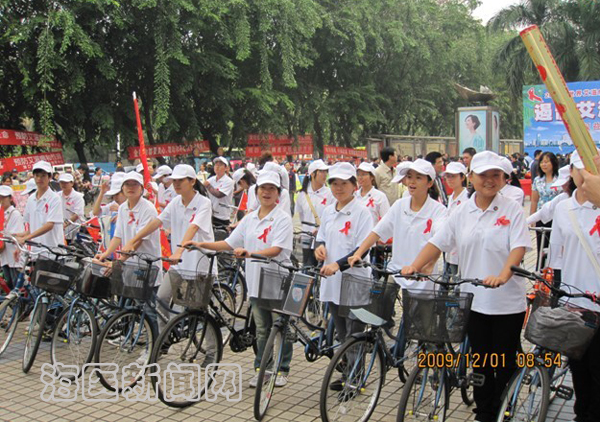 2009年12月1日,我校预防医学系党总支、团委组织一支由32名同学组成的艾滋病宣传队,在系党总支书记岑桑的指导下,在王基鸿、张荣和林春雨老师的带领下,参加了由海口市疾控中心、市防艾办、市卫生局主办的“世界艾滋病日”宣传活动。