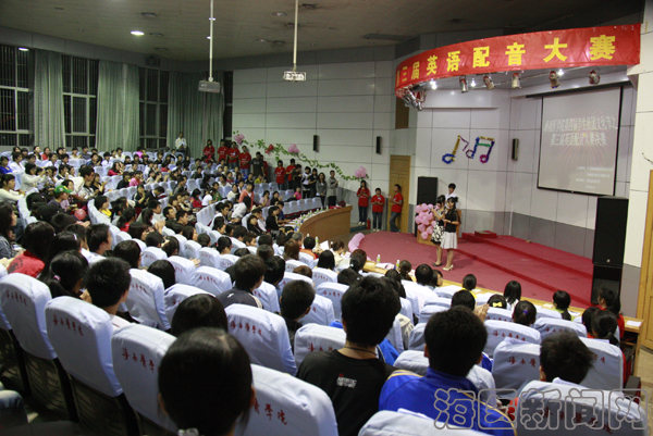第三届英语配音大赛在多功能报告厅举行。大赛由海医学生社团英语家庭协会和韩语协会共同举 办。应邀出席本次大赛的嘉宾有教务部林英姿主任、团委王鹏老师、临床学院团委书记王晖慧、预防医学系团委书记王基鸿及海南大学城西校区蓝眼睛协会代表、我 校学生社团、学生会负责人、及社联各协会会长等。评委由外教 Linda、外语部大学英语教研室符祝芹主任、李青老师、王康妮老师和外语部办公室郝美娟主任担任。