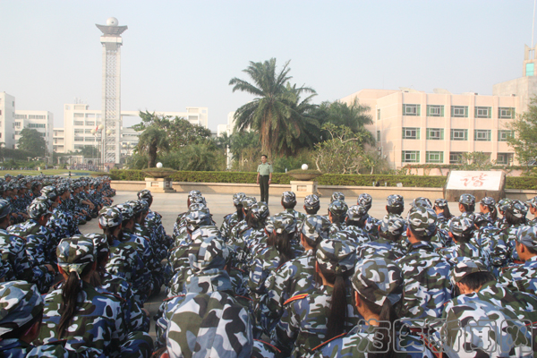 2009年新生军训大队队长谭美权,省边防武警总队军事训练处处长、海医2009年军训大队副队长刘旺,临床学院与护理学系的领导等对新生们进行了检阅。