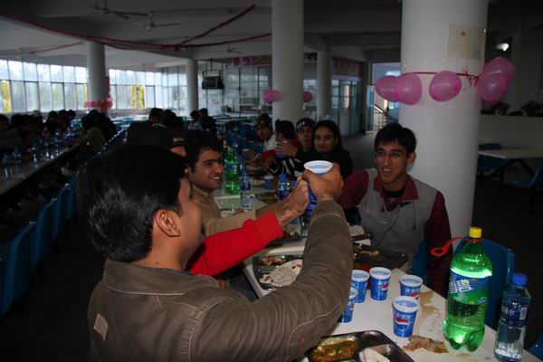1月25日晚,是农历大年三十,我校学生食堂二楼人头攒动,到处洋溢着一派欢乐祥和的气氛。我校组织400多名不回家过年的中国大学生、外国留学生及部分教职工一起吃年夜饭,欢度除夕。