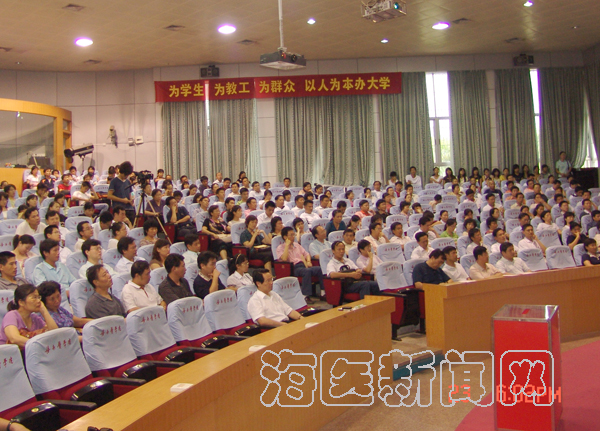 学院院长焦解歌在仪式上讲话。他首先对我院近段时间的抗震救灾工作做了总结。他强调说,汶川大地震造成的严重灾情牵动着海医师生员工的心。我校党委高度重视,积极响应中央和省委省政 府的号召,要求全校师生员工紧急行动起来,发扬“一方有难,八方支援”的传统美德,积极向灾区捐款、捐物、献血,支持灾区人民战胜灾情、恢复生产、重建家园。我院党委还向省委递交了请战书,派出了2批抗震救灾医疗队到灾区第一线开展积极有效救灾的工作,得到了灾区人民的高度评价。我院现已组成了由