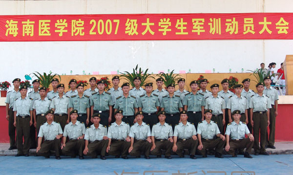 9月8日上午,我院2007级学生军训动员大会在田径运动场隆重召开,新生军训就此拉开序幕。海口市龙华区人民武装部政委高友民,学院领导焦解歌、刘军 保、何忠平,各有关职能部门的领导,军训大队部全体干部,各院系部党总支书记,解放军75569部队36名承训教官、1700余名2007级学生参加了军 训动员大会。大会由学工部部长李贤明主持。