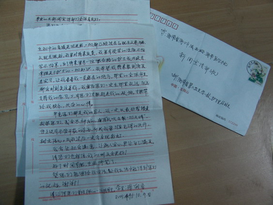 在我写这封信的时候,不知从何说起,在我拿起笔写的时候,我脑子里不断的回忆,在初中阶段,有您们的支持和鼓励,让我觉得自己是个幸运的女孩,在初中的时 候是您们捐助我,让我再次回到了校园,有您们的资助让我充满了自信坚持到毕业。如今,我已被省二卫校录取,我来到这个学校已经一个多月了,可是一直没有时 间给您们写信。我记得在初中将近毕业的时候,您们去看我,有一位叔叔曾对我说过,如果我被哪个学校录取就记得告诉他,其实您们对我的关爱和支持,让我永远 不感忘记这份恩德,如果当初没有您们伸出助暖之手,奉献爱心让我回到母校的怀抱,也许就没有今天的我,开心快乐的走进新的环境开始新的人生,您们的支持和 鼓励真的让我感激不尽,是您们给我指出一条很远的路,给我指出方向,帮助我走向目标,要我选择前进,不许后退,现在我离理想越走越近了。来到了这个学校, 选择了护理这个专业,我一定会努力去学,不管在初中的成绩是优是良,一切都已经过去了。现在从零开始,从现在做起,我要对将来负责,我要做好受苦的准备, 不怕苦不怕累,为了将来要当一名合格的护士我必须去掌握关于护士的一切知识,我希望我将来能到海医去实习,让我看看我一直想去的地方,那里的全体师生都会 时刻关注着我,我相信您们一定在那里永远永远支持我的学习,只有您们才能赶走我的烦恼,才能带给我快乐,兴奋的心情。