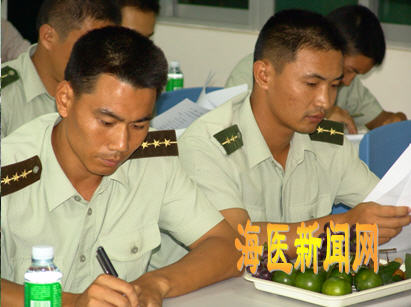 随后,全体与会人员认真细致地阅读了《2005级大学生军训工作实施意见》、《2005级新生军训科目计划表》等相关文件。学生工作部部长李贤明在会议中就在军训中如何解决学生的思想问题发表了自己的看法。李部长指出,海南的天气炎热,军训苦、军训累,加之今年要参加全省大学生军训阅兵及表演,繁重的军事训练压力难免会给我们的学员带来各种思想问题,因此,思想工作,必须伴随军事训练科目贯穿整个军训过程的始末。这样,才能更好地培养学员吃苦耐劳的精神,培养学生的归宿感。会议中,学院团委书记、军训大队副政委朱洪就在新生军训中举办的各种文体活动进行了简要的介绍,朱书记结合了之前军训文体活动成功举办的经验,提出了今年军训问题活动的新目标——做好、做精、做美。