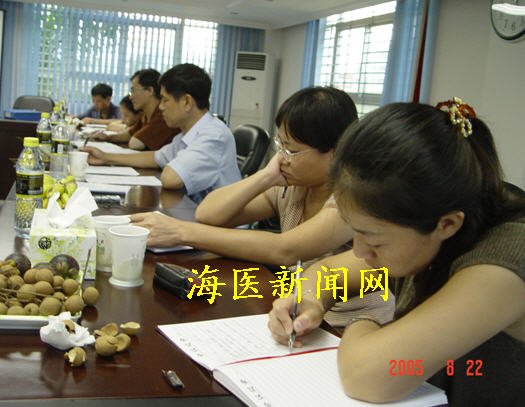 陈玉民副院长详细地汇报了我院开展保持共产党员先进性教育活动以来的具体措施和工作中出现的几大亮点。听完汇报后,省委“先教办”指导协调组副组长符惠琴同志进行了总结。她说:海医的“先教”工作做得不少,取得了一定的成效,但也存在着一些问题。为了帮助海医的“先教”工作,更好地推进这项工作的开展。她提出了几点要求: