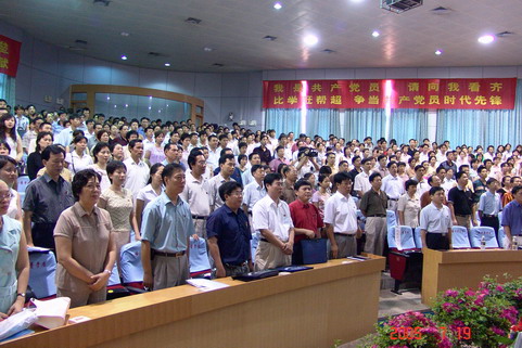 2005年7月19日上午8:30,我院在多功能报告厅隆重召开保持共产党员先进性教育活动动员大会。 参加会议的领导有:省教育工委督导组组长、华南热带农业大学党委副书记韦勇,副组长、海南大学宣传部负责人王志芳,督导组成员海南中学李发贞 、海南省农业学校陈光翠以及我院党委书记李永春,党委副书记、院长焦解歌,党委副书记肖玉明,副院长刘军保、陈玉民。党委委员、党委秘书长何忠平,党委委员附属医院院长孙公凯及全院师生党员约400人参加了大会。