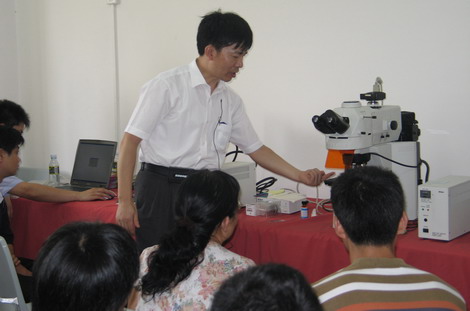 为了进一步强化我部教学人员对新技术应用的了解,及时掌握显微成像技术发展的最新成果,开拓视野,提高实验教学水平,更好地推进 评建工作,基础医学部与广州华粤行仪器有限公司于2005年6 月27日在基础医学部会议室联合举办了“2005年最新显微成像技术专题会议”。学院各院、系、部和华南热带农业大学的教学和科研人员近70多人参加了本次专题会。与会者认真听取了Nikon(尼康)公司邓小卫工程师的《共聚焦及全内反射荧光最新技术及应用》专题讲座以及华粤行技术部刘昆元博士的《生物学最新显微成像技术及显微镜基础理论》介绍。大家对新技术兴趣较大,积极发言,踊跃提问,主讲者热情解答,充分体现了学术交流的氛围。专题会还现场展示了华粤行仪器有限公司的最新显微镜产品,演示了产品的各种性能,并将有些教师带来的自行制备的样品在最新式的显微镜上进行了观察,收到了较好的效果。