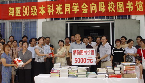 7月9号上午,我院临床医学专业95届本科班86名同学兴致勃勃地返回母校参观,并向学院图书馆捐赠价值5000元的图书。肖玉明副书记出席捐赠仪式,并代表院党政领导致辞。 图书馆馆长于婉平、副馆长黄玉华也出席了捐赠仪式。