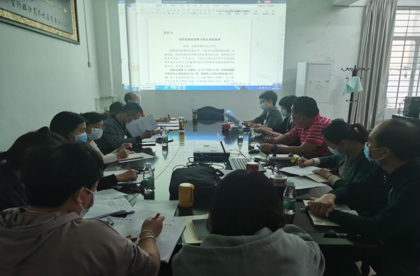 疫情防控应急处置预案(2022年版)》《高校疫情防控警示教育典型案例》等文件和警示案例,观看了《今日零时起必须戴口罩》视频,并结合学习会前自学《高等学校新冠肺炎疫情防控技术方案(第四版)》《23种疫情防控违法违规行为及可能产生的法律后果》《当心!一确诊病例因没戴口罩,距离0.5米被感染,戴口罩细节很重要》等文件、警示案例,进行了深入交流研讨。