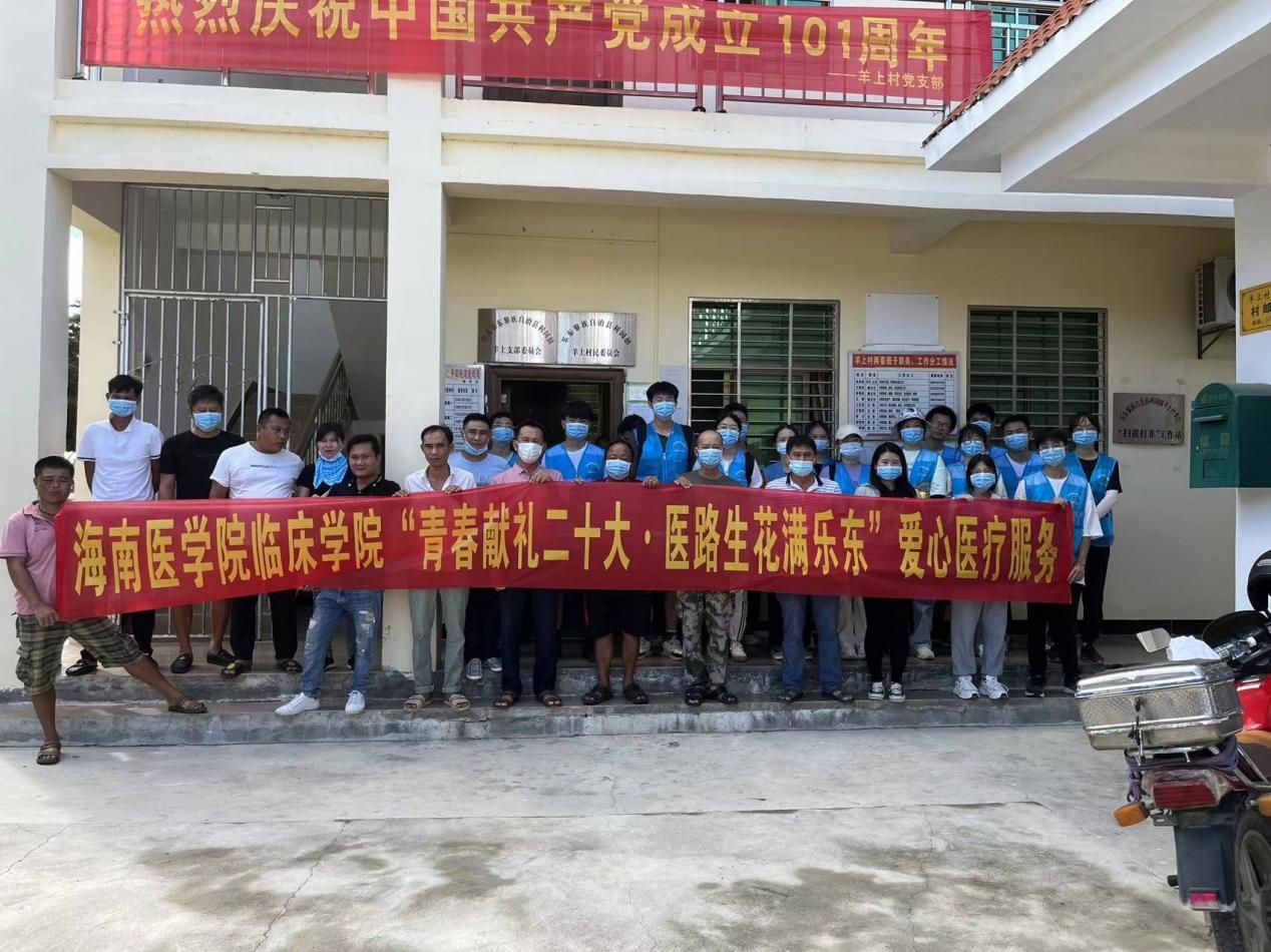 临床学院组建一支共26名成员的爱心医疗服务团,充分发挥医学特长,前往乐东黎族自治县利国镇开展义诊、科普等活动,为建设热带特色鲜明的国际化高水平医科大学和更高水平的健康岛贡献青春力量,以实际行动迎接党的二十大的胜利召开。