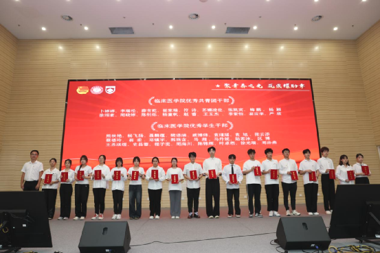 大会通过视频《逐梦医路践青春》回顾了2024年两院团委在思想引领、活力赋能、学术竞赛、志愿担当中的丰硕成果,大会表彰五四红旗团支部3个、优秀共青团干部18名、优秀学生干部24名、优秀共青团员64名、先进志愿者6名、优秀志愿者48名、优秀干事12名。