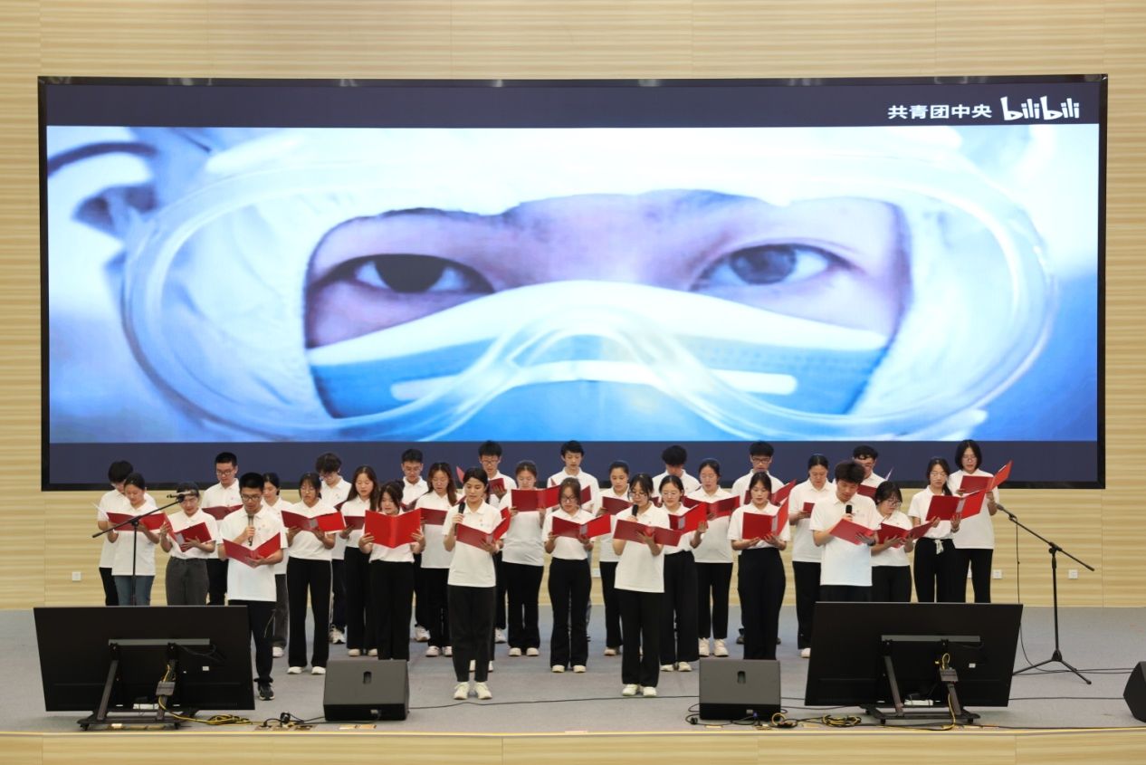 优秀共青团干部代表卜婷婷以“转专业破茧之路”为切入点,分享了从目标确立到学科竞赛夺冠的成长历程,号召青年“以五四精神铸魂,以青春之力担责”。新团员以诗朗诵《南海之滨的青春誓言》传递医者初心,24级临本1班同学合唱《明天会更好》,用歌声展望未来,展现了医学青年的蓬勃朝气与家国情怀。