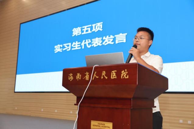 会议最后,马志健发表寄语。他强调,全体医学生要牢记“人民至上、生命至上”理念,将个人理想与党和国家医疗事业发展紧密结合。他提出三点核心期望:一是把握职业发展方向盘,在临床实践中坚守医者初心;二是立足海南自贸港建设机遇,培养家国情怀与国际医疗视野;三是严守医疗廉洁纪律,构建涵盖职业道德、医疗安全的全方位防护体系。他代表医院党委表示,将通过优化带教机制、强化党建业务融合等举措,全力支持实习生成长为德才兼备的医务工作者,为健康中国战略贡献海南力量。