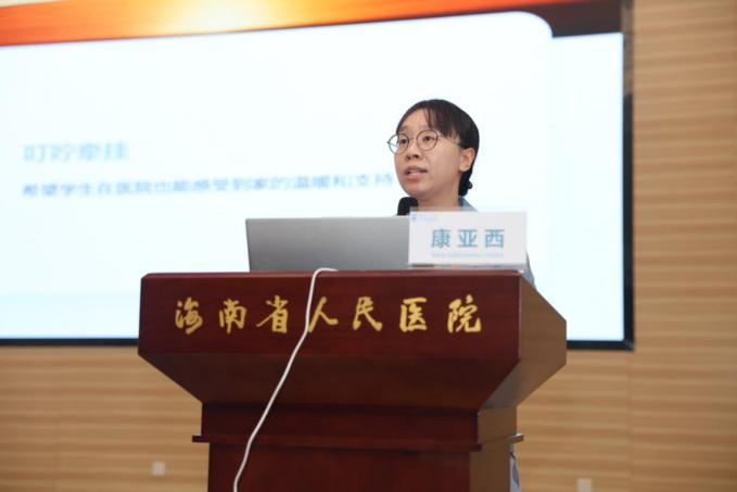 附属海南医院(临床医学院)党委学生工作部部长康亚西就实习期间的生活管理、行为规范、安全纪律等方面提出了明确要求。她强调,实习生应遵守医院各项规章制度,展现良好精神风貌,注意个人安全,合理安排作息时间,确保实习生活安全有序能够全身心地投入到学习和工作中。