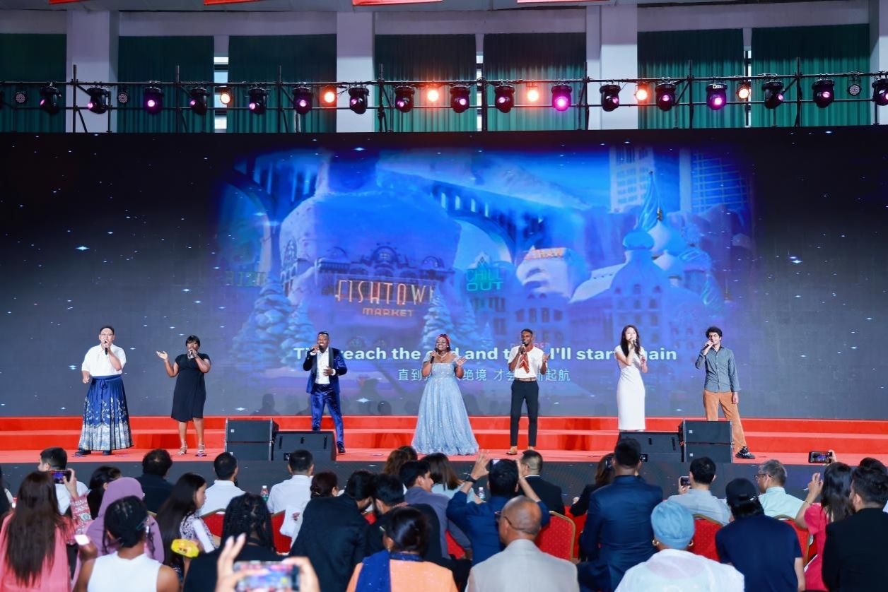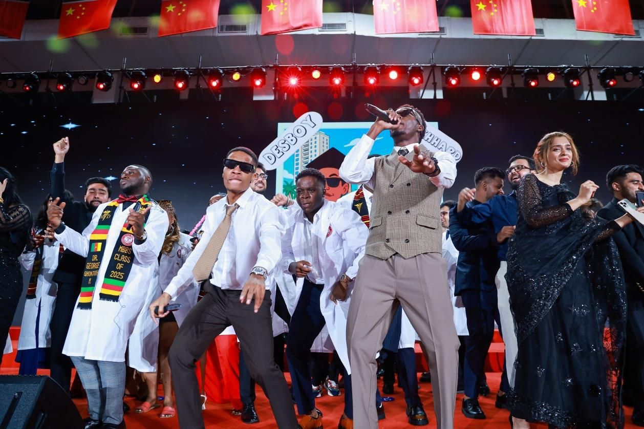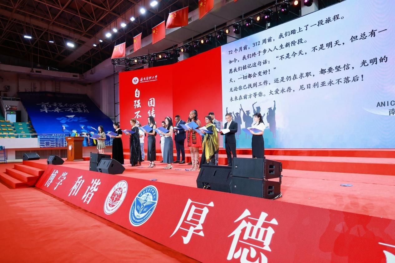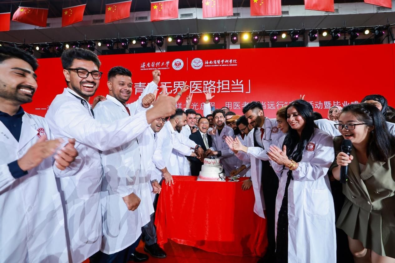 “青春启程·医者誓言”篇章将典礼推向高潮。朗诵《医路无界·青春同航》中,“健康所系,性命相托”的誓词响彻礼堂;留学生传统文化歌曲串烧海南民谣《抓鱼歌》《青玉案·元夕》和豫剧《谁说女子不如男》等节目展现了留学生的语言能力和对中国传统文化的热爱;巴基斯坦留学生带来的舞蹈表演展现了浓郁的异域风情;非洲留学生的自创歌曲《Graduando》引爆全场。