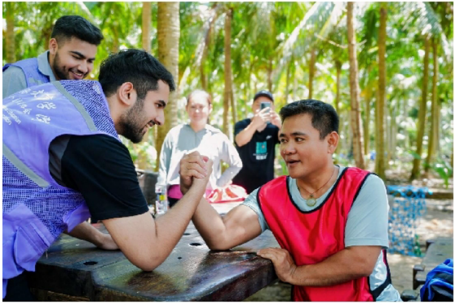 在文化交融方面,团队深入体验礼纪军坡节和“猛虎下山拳”武术非遗民俗文化,通过访谈归侨人士挖掘兴隆咖啡文化和华侨创业史,并参访具有700年历史的文氏祠堂了解优良家风家训。