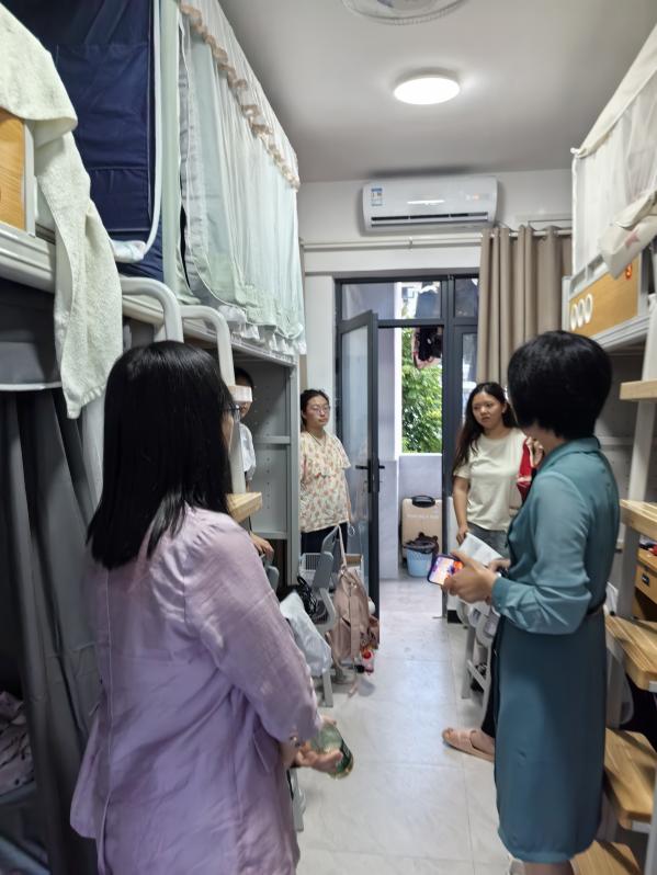 课堂巡查后,郭向、朱敏及新生辅导员走进学生宿舍,细致排查消防安全隐患,查看用电安全、卫生状况,向同学们强调宿舍安全的重要性,提醒大家增强安全防范意识,共同维护整洁、安全、和谐的“第二家园”。
