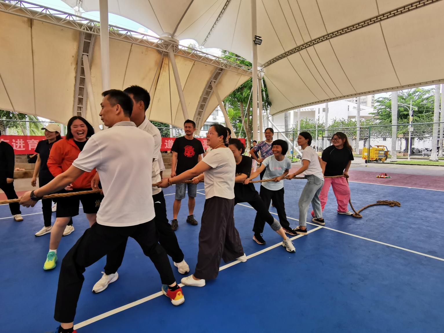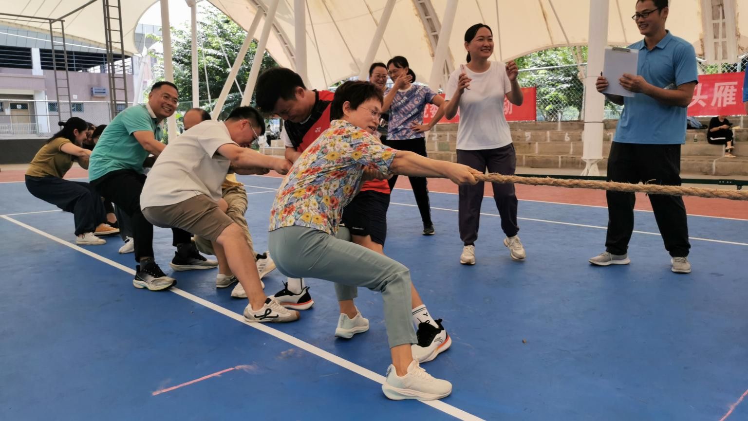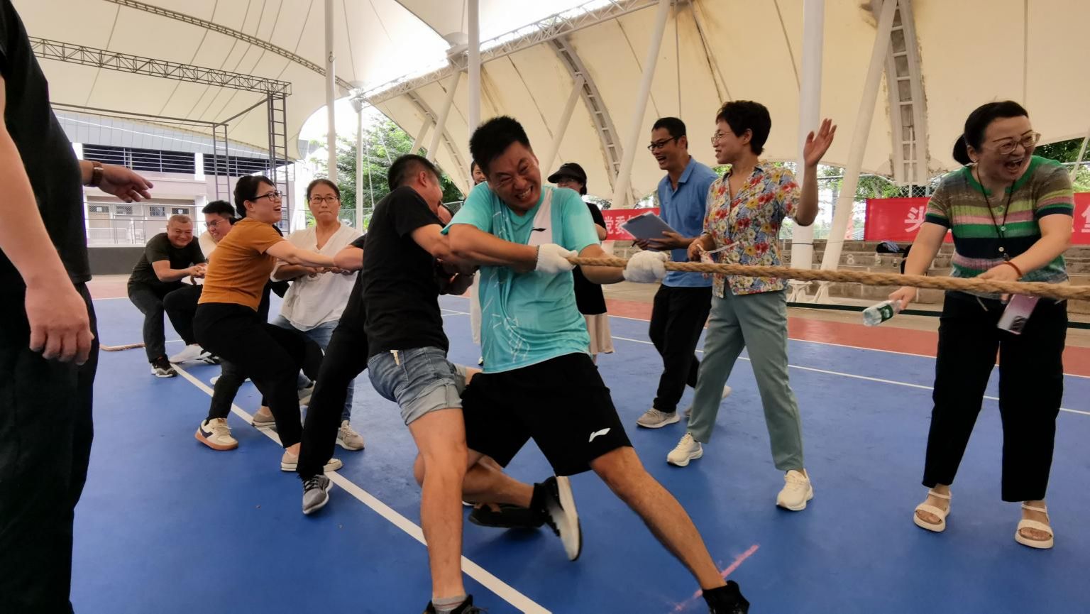 拔河比赛作为活动的压轴项目,将现场气氛推向了顶点。随着裁判一声令下,双方队员齐心协力,紧握拔河绳,全力拼搏,红布在两队之间来回移动,现场加油助威声震耳欲聋。各队队员们咬紧牙关,团结一致,展现出顽强拼搏的精神风貌。