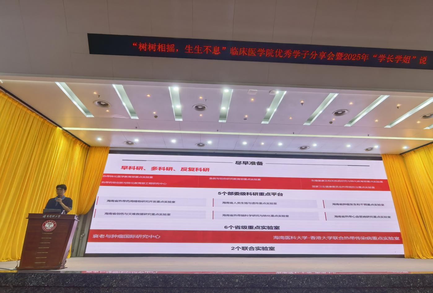 金秋送爽,丹桂飘香,薪火相传,筑梦启航。10月23日晚,临床医学院在立德厅举办“树树相摇,生生不息”优秀学子分享会暨2025年“学长学姐说”活动。本次活动作为新生入学教育的重要一环,特邀五位在学业科研、临床实践、综合素质等方面表现突出的学长学姐,与现场四百余名大一新生展开深入交流,共同谱写了一场关于成长、关于梦想、关于传承的青春盛会。