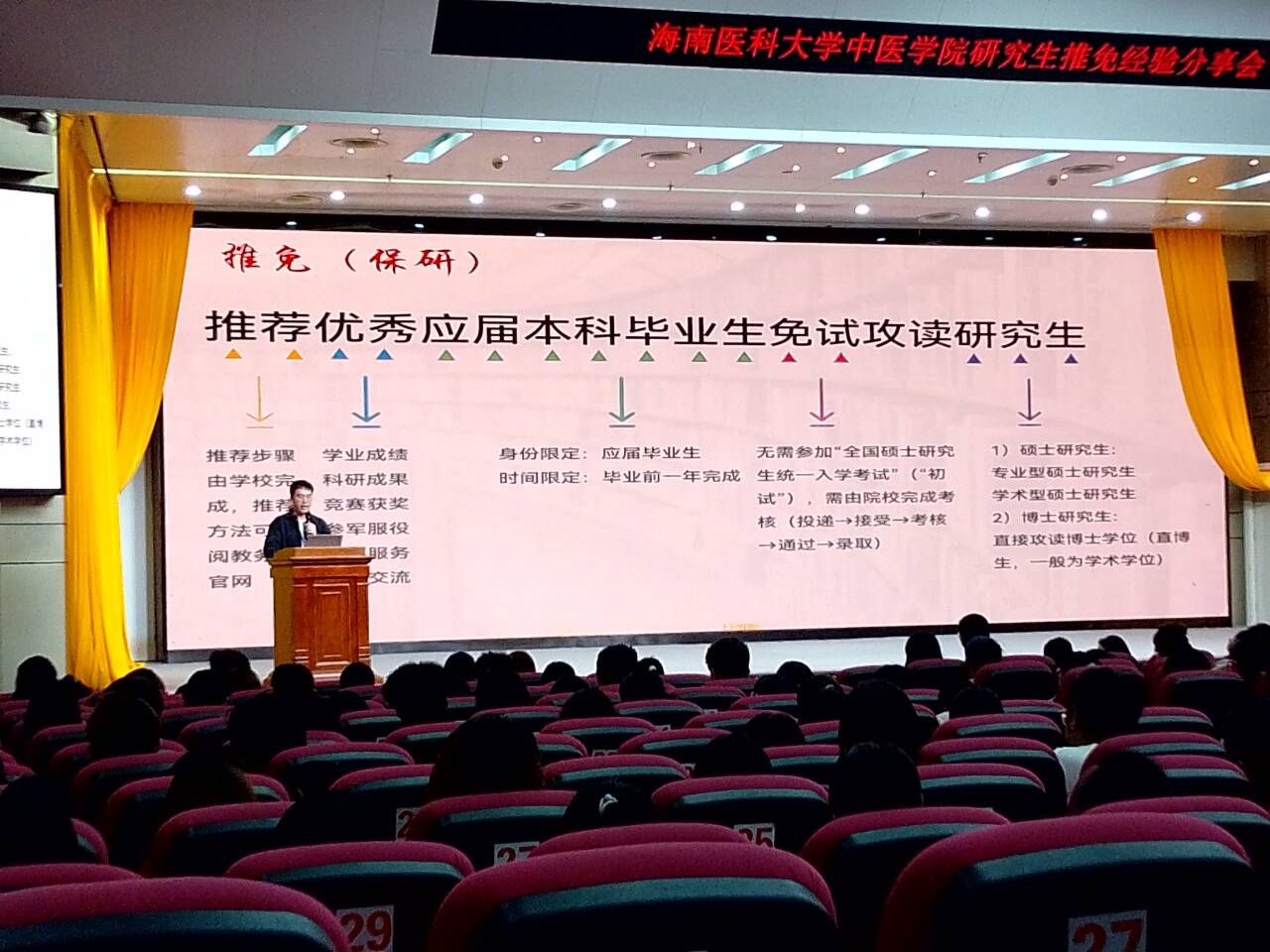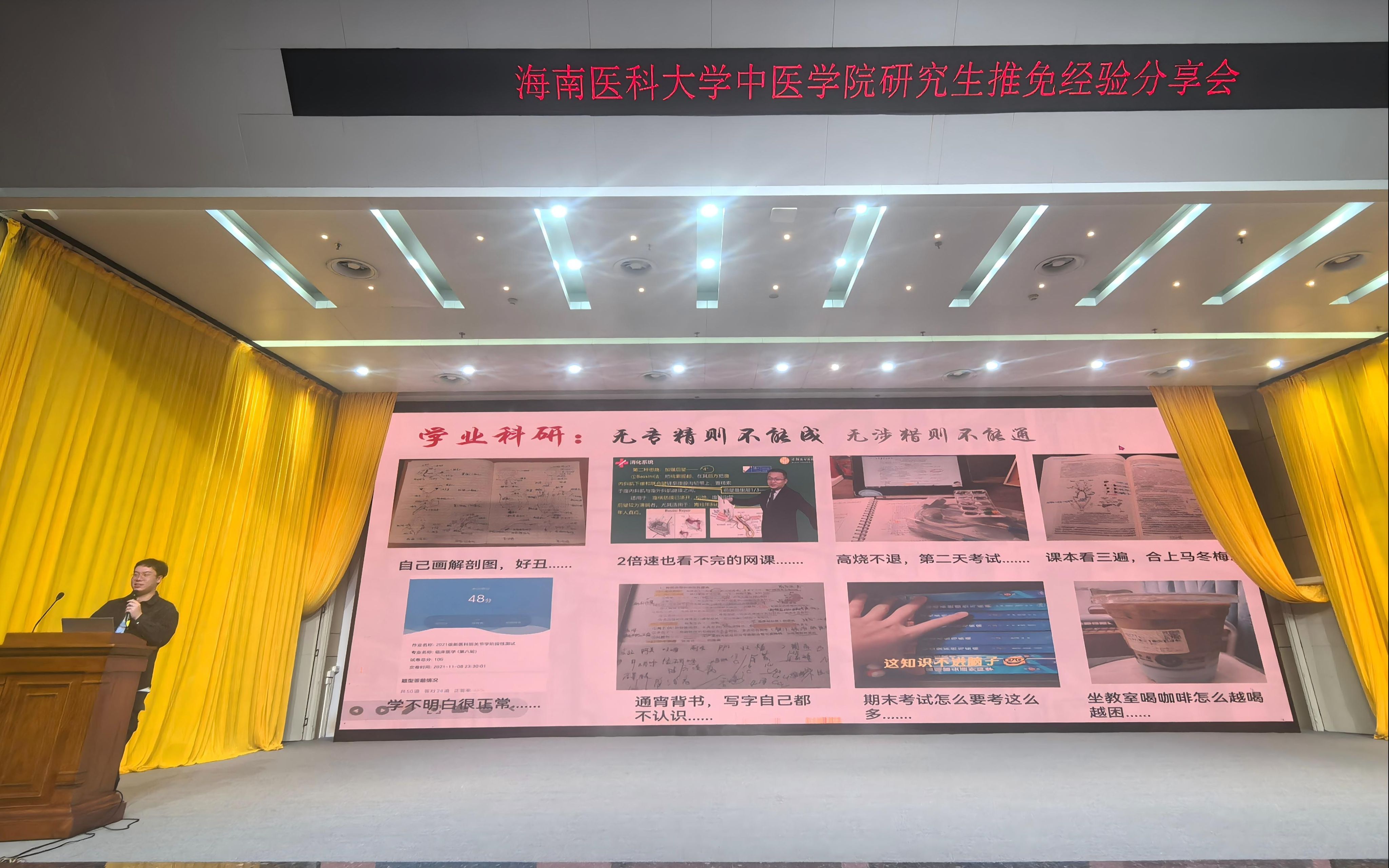 依托学校“薪火”系列育人品牌感召与首届推免工作的亮眼成效。11月26日晚,我校中医学院在国际报告厅举办刘勇杰成长经验分享会,旨在为进一步深化学院特色学风建设,帮助学子明晰成长路径。学院2024级、2025级全体师生齐聚现场,共学推免技巧、共话成长规划。
