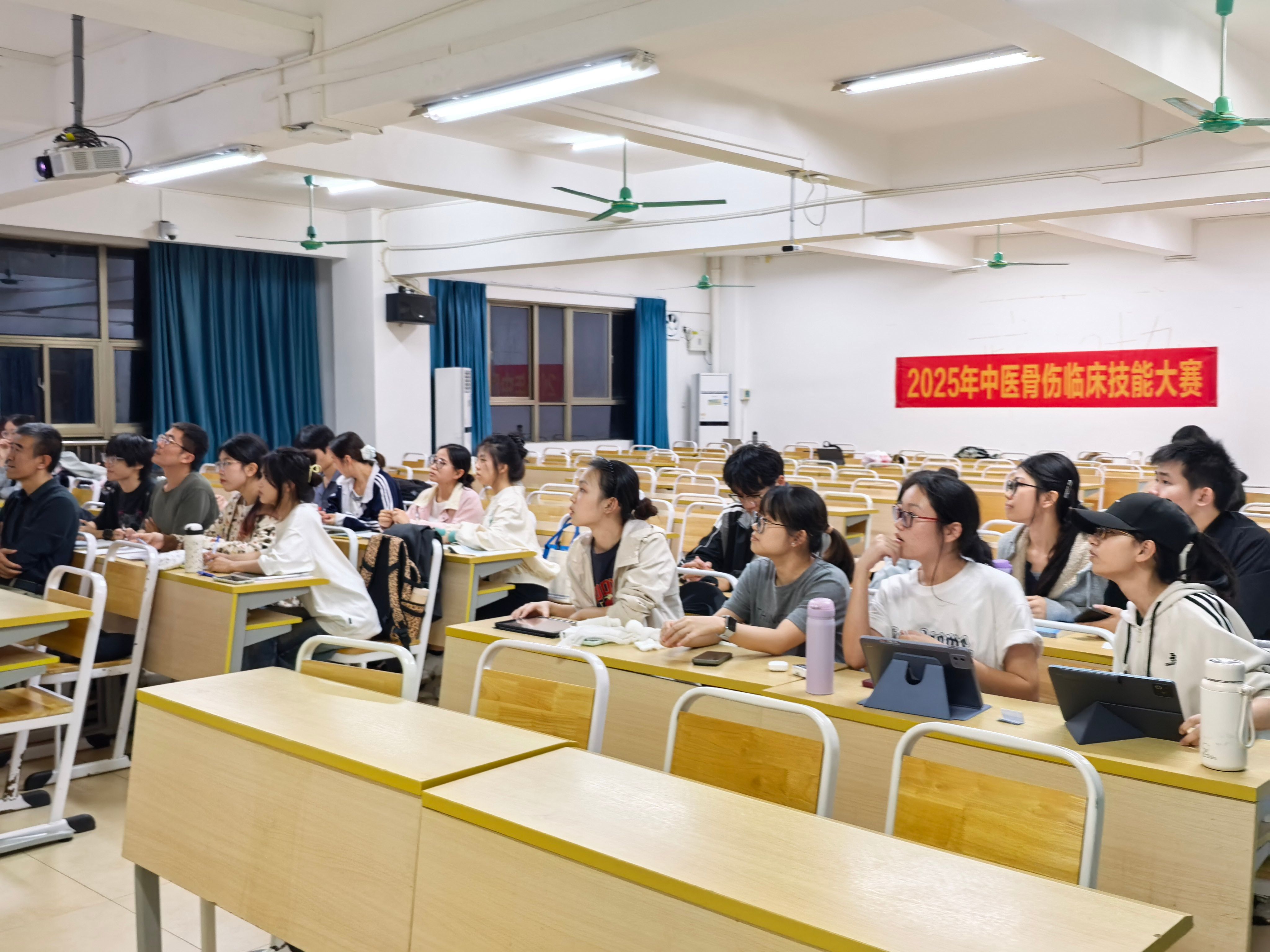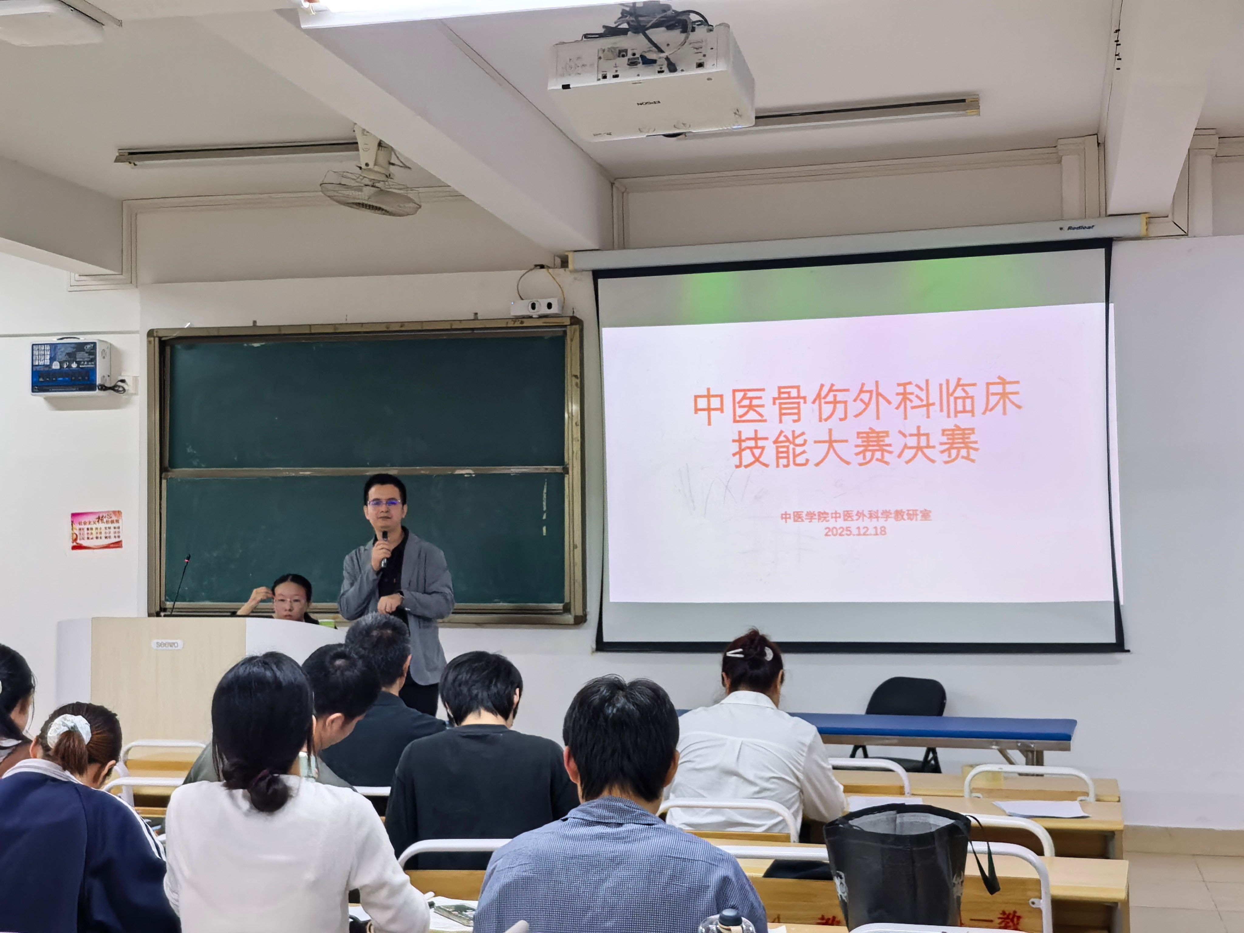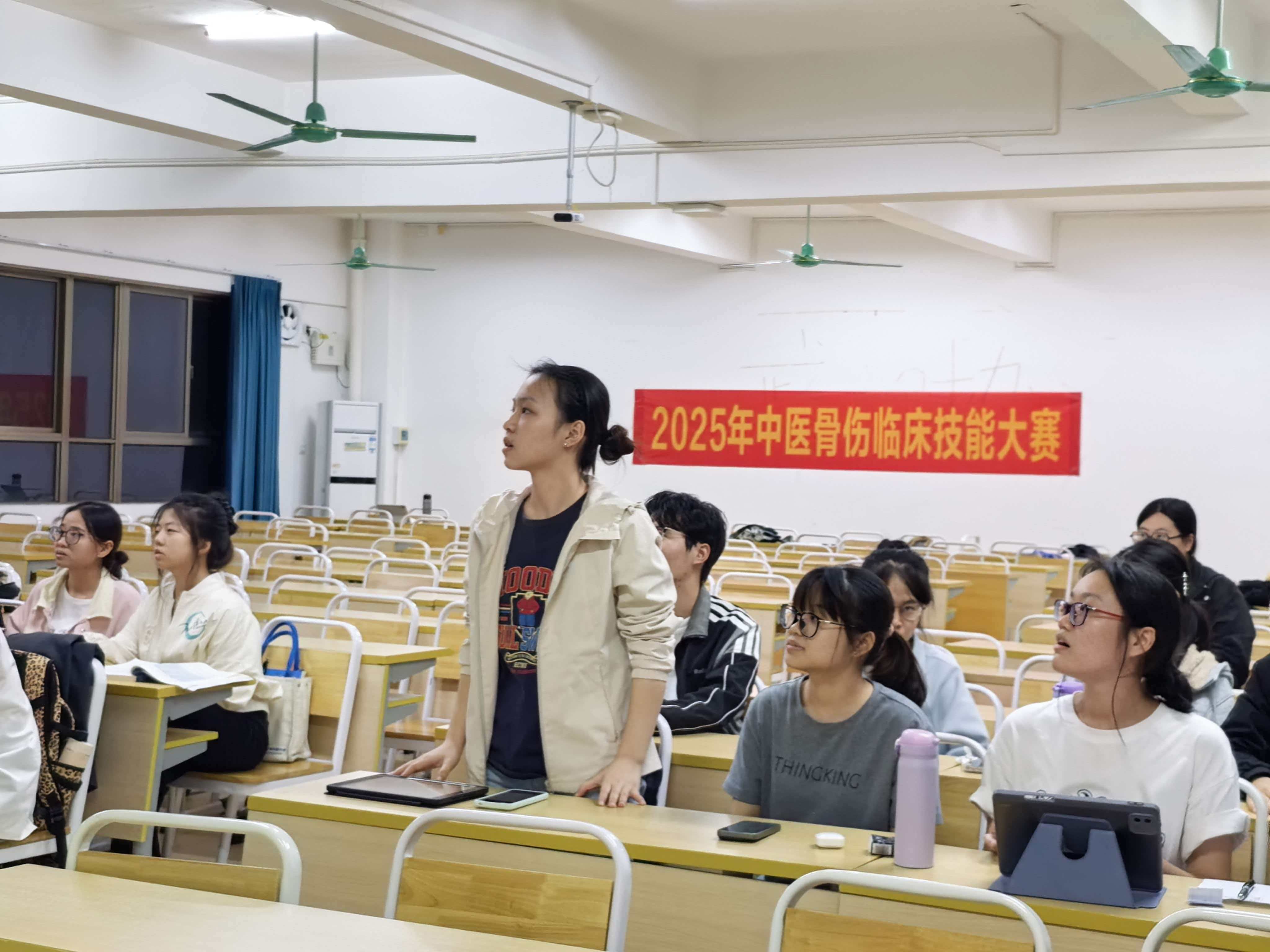 在海南自贸港建设蓬勃推进、医疗卫生事业开放创新不断深化的背景下,12月18日晚,我校2025年中医骨伤临床技能大赛决赛在4-106教室举办。