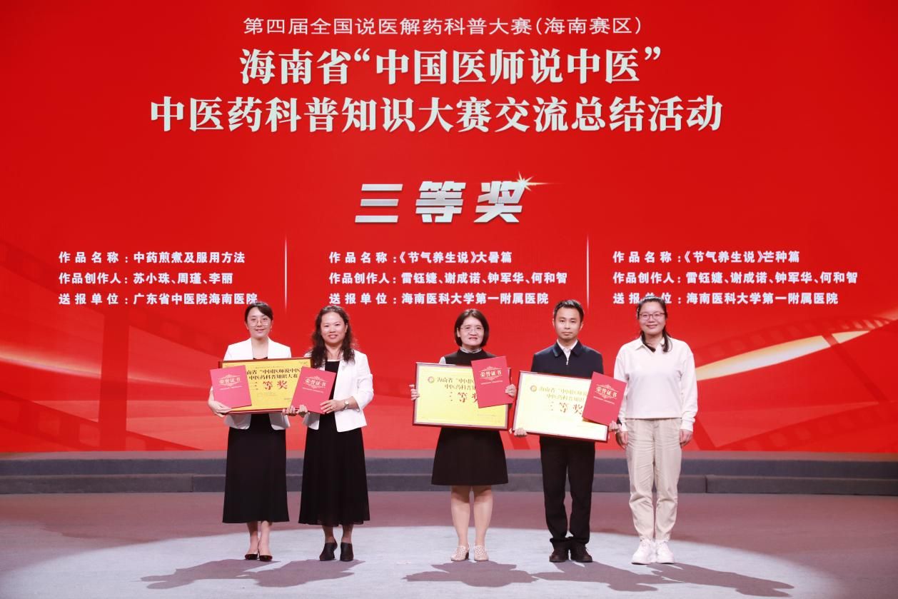 12月18日,第四届全国说医解药科普大赛(海南赛区)暨海南省 “中国医师说中医”中医药科普知识大赛交流总结活动在海口举行。海南医科大学第一附属医院选送的科普作品表现亮眼,一举斩获二等奖1个、三等奖2个,充分展现了医院在健康科普创作与中医药文化传播领域的扎实功底与创新活力。