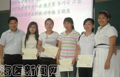 08级护理专业本科班的许珍梅同学代表获奖同学作了发言。副院长张彩虹向获奖同学表示祝贺,她希望同学们养成自主学习的习惯,培养自主学习的能力,热爱护理专业并用发展的眼光看待自己的专业,珍惜时间和精力。继续努力、再创辉煌。