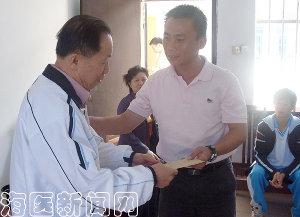 记者从体育部获悉,该党支部在连续3年资助2名少数民族贫困学生顺利完成高中学业,并以优异成绩考取大学后。近日,体育党支部党员们再次来到国兴中学,将1560元交到国兴中学党委书记薛贵涛手中,作为生活及学费补贴,资助2名贫困黎族学生——陈明、李德新,缓解了他们生活困难的状况。