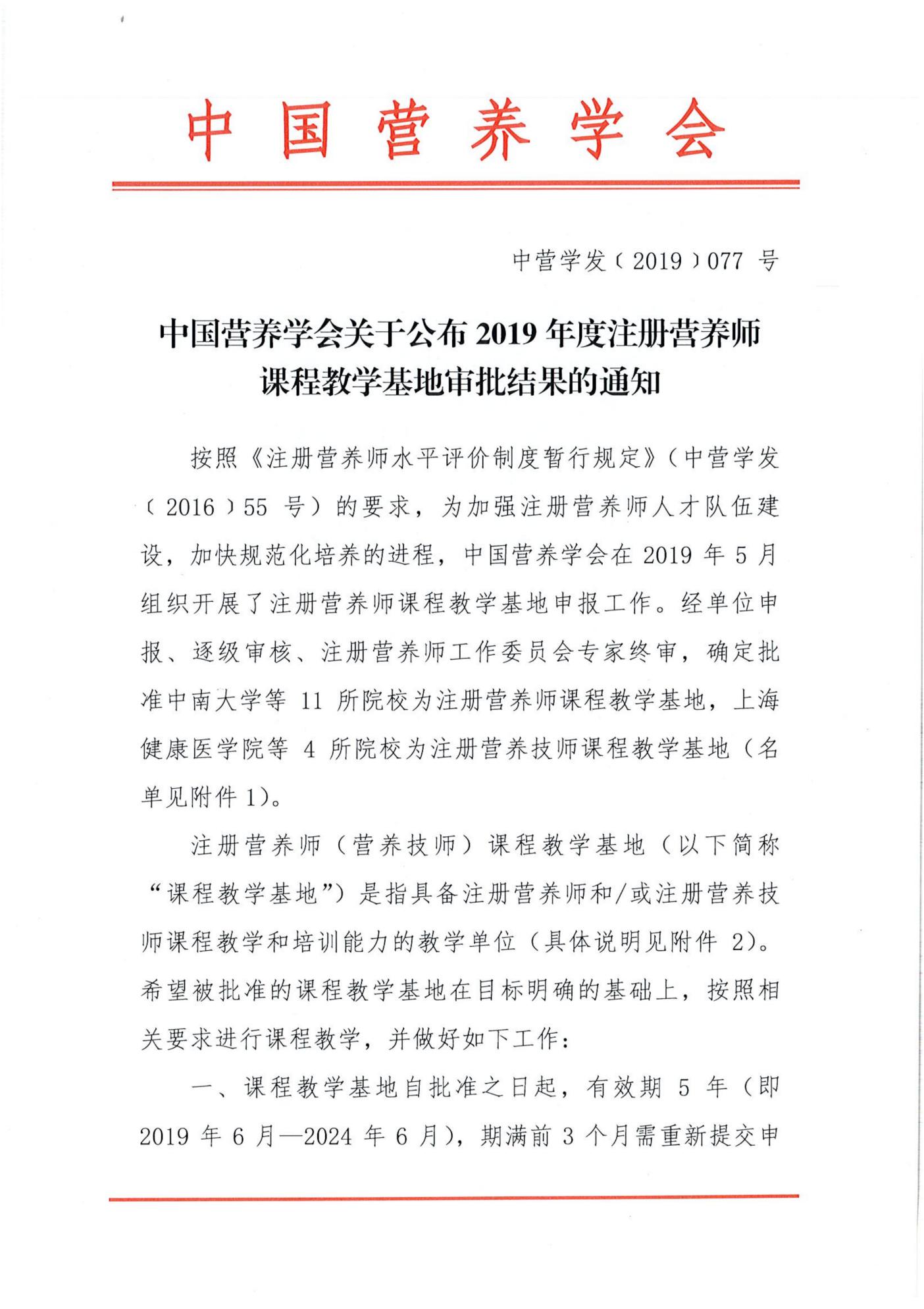 喜报!热烈祝贺我校获批中国营养学会注册营养师课程教学基地!