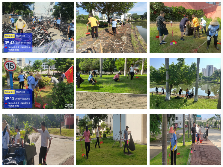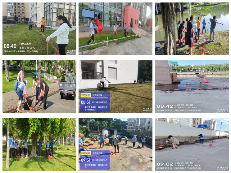 为深入贯彻习近平总书记关于爱国卫生运动的重要指示批示精神,认真落实《海南省新型冠状病毒感染疫情防控工作指挥部综合组关于开展周末卫生大扫除活动的通知》《中共海南省委组织部 中共海南省委省直属机关工作委员会关于号召全省基层党组织和广大党员干部积极参与周末卫生大扫除活动的通知》等文件要求,我校后勤处于8月9日组织开展卫生大扫除活动。