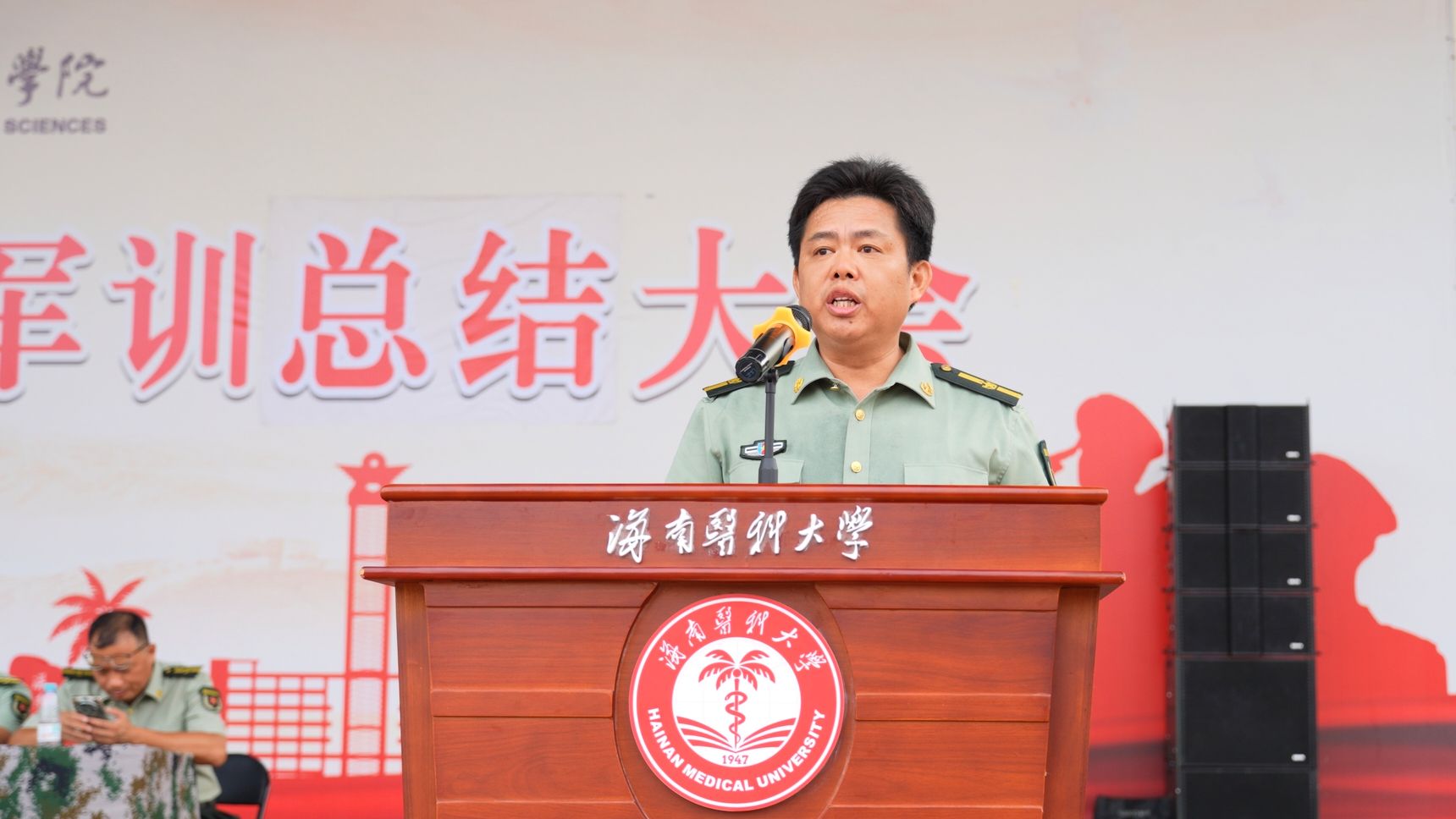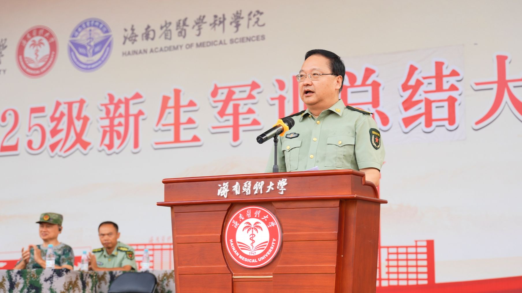 最后,张巍作总结讲话。他向顺利完成军训任务的全体新生表示祝贺,并向辛勤付出的教官与工作人员致以诚挚感谢。他指出,军训是新生进入大学的“第一课”,大家在军训中磨砺了意志、锤炼了作风,这些品质不仅是成长为卓越医学人才不可或缺的精神底色,也是未来面对学业挑战和人生风雨的“精神铠甲”。他希望,同学们将军训中锤炼的顽强意志,转化为严谨求学的学风;将军训中凝聚的温情,升华为博爱奉献的医德;将军训中点燃的豪情,内化为终身成长的动力,把个人理想融入国家发展和海南自由贸易港建设的大局,以仁心仁术守护生命,以青春智慧奉献时代。
